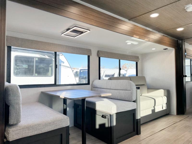 Are you looking to upgrade your RV to a trailer with more space and more features? Look no further than this Vibe! The kids are sure to claim the double-size bunks to themselves, while the adults take the front private bedroom with the queen bed. You will find even more sleeping space on the 5-person dinette and tri-fold sofa within the large slide out. After a day outdoors at the lake, get cleaned up in the full bath that includes a 40" x 30" shower.