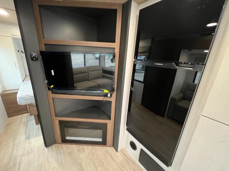 With any Vibe travel trailer by Forest River, you will enjoy comfort at every turn! There is a Norco huck-bolted steel frame, an enclosed underbelly with 12V heating pads, and a PVC roof membrane for added durability. You will also find a universal docking station outside, along with slam latch doors, European style square windows, and an automotive painted front cap. Head inside to enjoy the premium residential-style furniture, decorative window treatments, privacy shades in the living room and bedroom, and many more comforts!