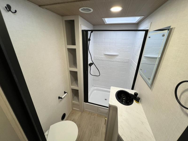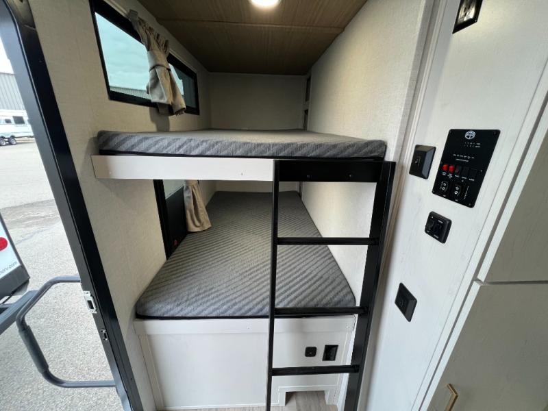 Are you looking to upgrade your RV to a trailer with more space and more features? Look no further than this Vibe! The kids are sure to claim the double-size bunks to themselves, while the adults take the front private bedroom with the queen bed. You will find even more sleeping space on the 5-person dinette and tri-fold sofa within the large slide out. After a day outdoors at the lake, get cleaned up in the full bath that includes a 40" x 30" shower.