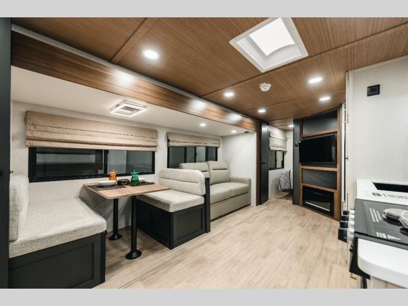 Are you looking to upgrade your RV to a trailer with more space and more features? Look no further than this Vibe! The kids are sure to claim the double-size bunks to themselves, while the adults take the front private bedroom with the queen bed. You will find even more sleeping space on the 5-person dinette and tri-fold sofa within the large slide out. After a day outdoors at the lake, get cleaned up in the full bath that includes a 40" x 30" shower.