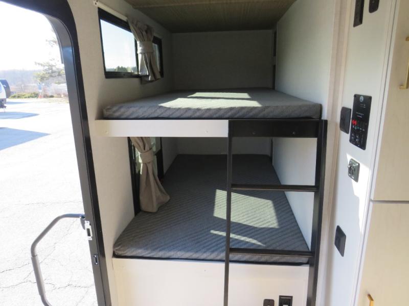 Are you looking to upgrade your RV to a trailer with more space and more features? Look no further than this Vibe! The kids are sure to claim the double-size bunks to themselves, while the adults take the front private bedroom with the queen bed. You will find even more sleeping space on the 5-person dinette and tri-fold sofa within the large slide out. After a day outdoors at the lake, get cleaned up in the full bath that includes a 40" x 30" shower.