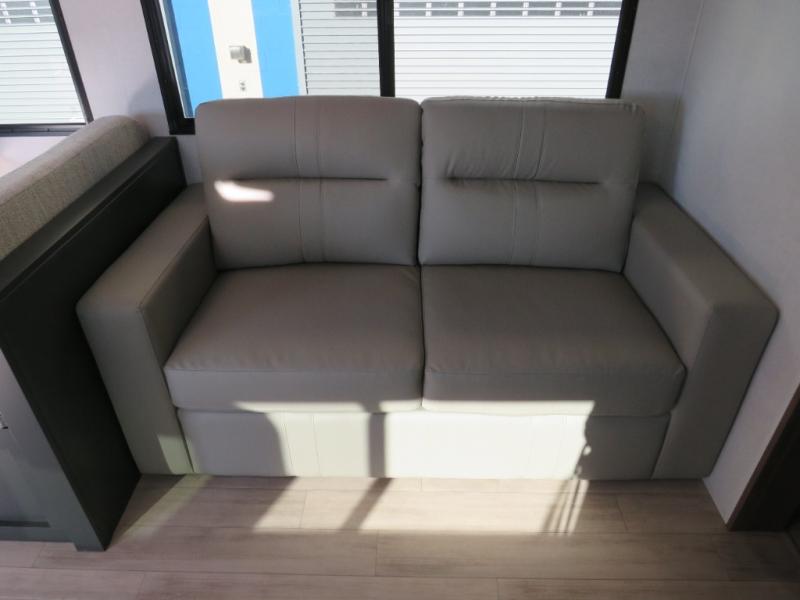 With any Vibe travel trailer by Forest River, you will enjoy comfort at every turn! There is a Norco huck-bolted steel frame, an enclosed underbelly with 12V heating pads, and a PVC roof membrane for added durability. You will also find a universal docking station outside, along with slam latch doors, European style square windows, and an automotive painted front cap. Head inside to enjoy the premium residential-style furniture, decorative window treatments, privacy shades in the living room and bedroom, and many more comforts!