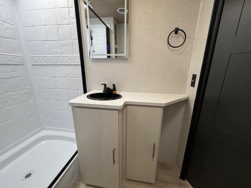 Are you looking to upgrade your RV to a trailer with more space and more features? Look no further than this Vibe! The kids are sure to claim the double-size bunks to themselves, while the adults take the front private bedroom with the queen bed. You will find even more sleeping space on the 5-person dinette and tri-fold sofa within the large slide out. After a day outdoors at the lake, get cleaned up in the full bath that includes a 40" x 30" shower.