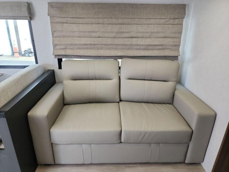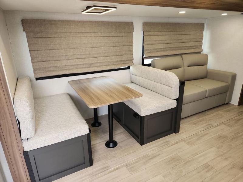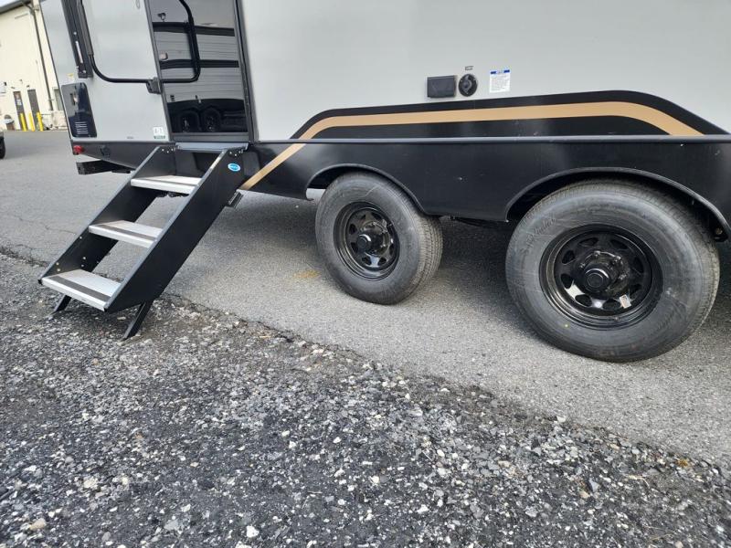 With any Vibe travel trailer by Forest River, you will enjoy comfort at every turn! There is a Norco huck-bolted steel frame, an enclosed underbelly with 12V heating pads, and a PVC roof membrane for added durability. You will also find a universal docking station outside, along with slam latch doors, and the largest square windows in its class. Inside, you'll find a 6' 8" ceiling height, an oversized residential-style sink, no carpet for easier cleaning, plus premium residential-style furniture for all around comfort. Each model is also prepped for a back-up camera, an On-The-Go ladder attachment, and solar power, allowing you to upgrade your travel trailer if you choose!