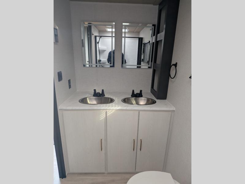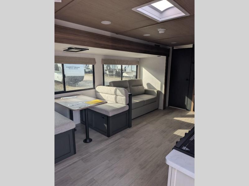 With any Vibe travel trailer by Forest River, you will enjoy comfort at every turn! There is a Norco huck-bolted steel frame, an enclosed underbelly with 12V heating pads, and a PVC roof membrane for added durability. You will also find a universal docking station outside, along with slam latch doors, and the largest square windows in its class. Inside, you'll find a 6' 8" ceiling height, an oversized residential-style sink, no carpet for easier cleaning, plus premium residential-style furniture for all around comfort. Each model is also prepped for a back-up camera, an On-The-Go ladder attachment, and solar power, allowing you to upgrade your travel trailer if you choose!