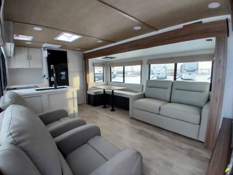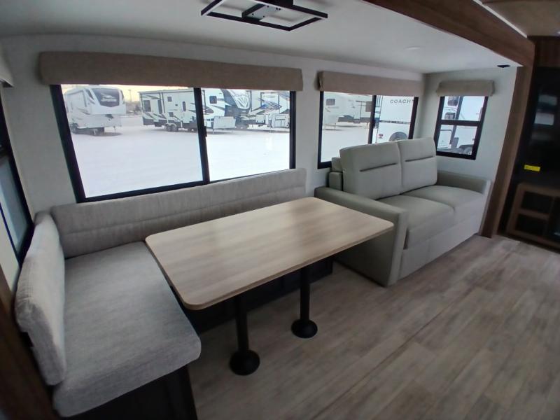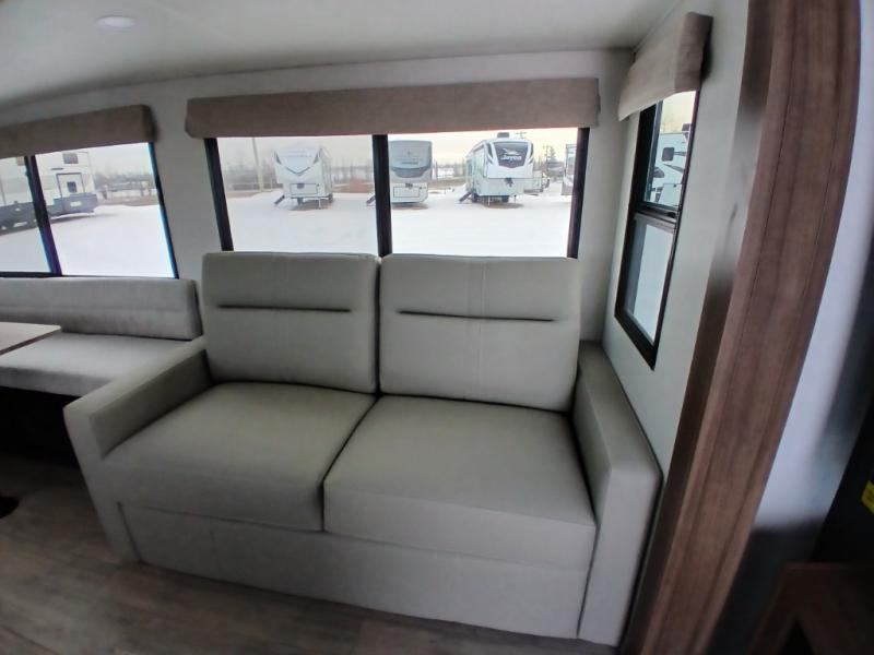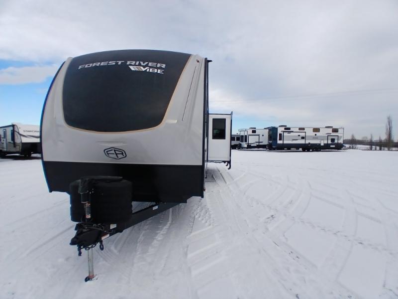 With any Vibe travel trailer by Forest River, you will enjoy comfort at every turn! There is a Norco huck-bolted steel frame, an enclosed underbelly with 12V heating pads, and a PVC roof membrane for added durability. You will also find a universal docking station outside, along with slam latch doors, European style square windows, and an automotive painted front cap. Head inside to enjoy the premium residential-style furniture, decorative window treatments, privacy shades in the living room and bedroom, and many more comforts!