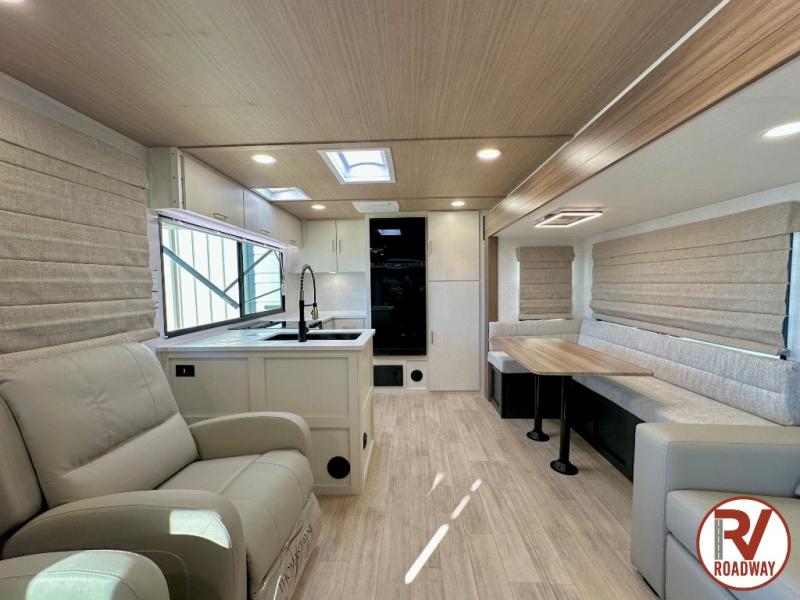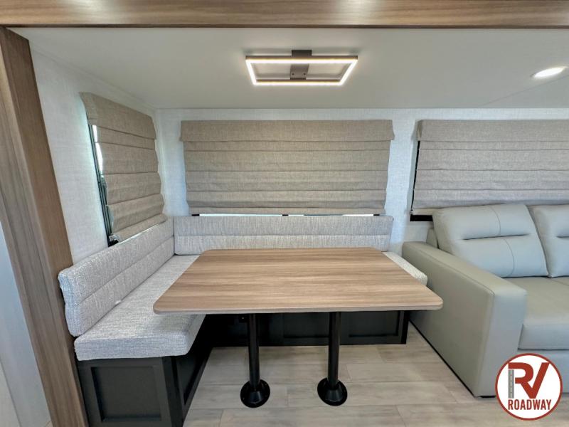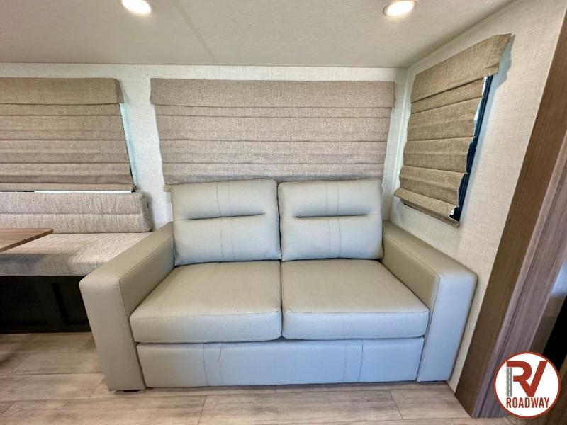 With any Vibe travel trailer by Forest River, you will enjoy comfort at every turn! There is a Norco huck-bolted steel frame, an enclosed underbelly with 12V heating pads, and a PVC roof membrane for added durability. You will also find a universal docking station outside, along with slam latch doors, European style square windows, and an automotive painted front cap. Head inside to enjoy the premium residential-style furniture, decorative window treatments, privacy shades in the living room and bedroom, and many more comforts!