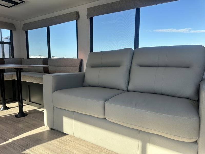 With any Vibe travel trailer by Forest River, you will enjoy comfort at every turn! There is a Norco huck-bolted steel frame, an enclosed underbelly with 12V heating pads, and a PVC roof membrane for added durability. You will also find a universal docking station outside, along with slam latch doors, European style square windows, and an automotive painted front cap. Head inside to enjoy the premium residential-style furniture, decorative window treatments, privacy shades in the living room and bedroom, and many more comforts!