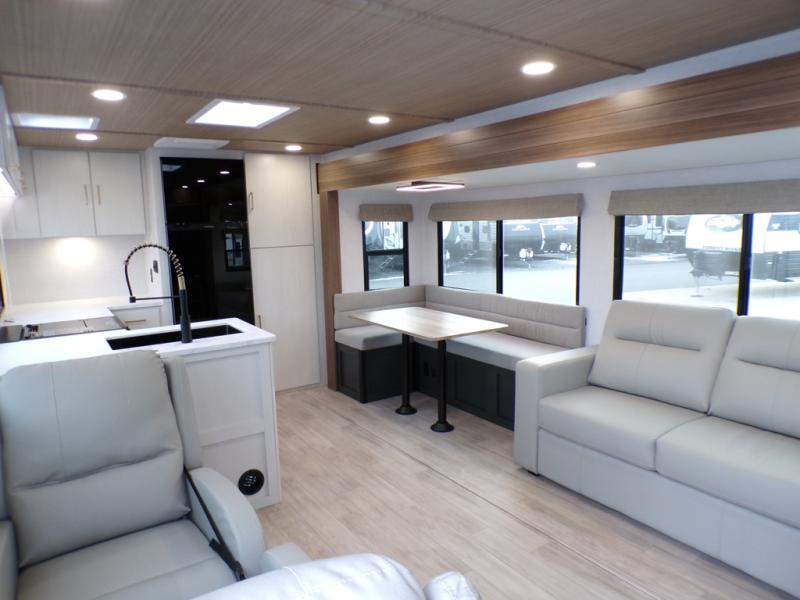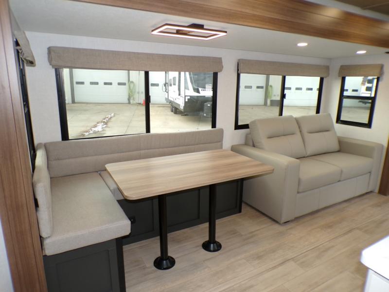 With any Vibe travel trailer by Forest River, you will enjoy comfort at every turn! There is a Norco huck-bolted steel frame, an enclosed underbelly with 12V heating pads, and a PVC roof membrane for added durability. You will also find a universal docking station outside, along with slam latch doors, European style square windows, and an automotive painted front cap. Head inside to enjoy the premium residential-style furniture, decorative window treatments, privacy shades in the living room and bedroom, and many more comforts!