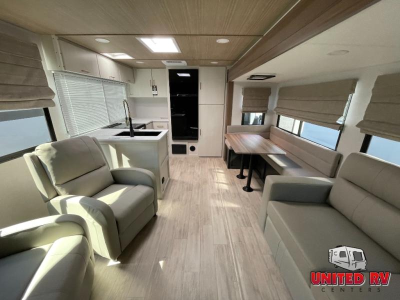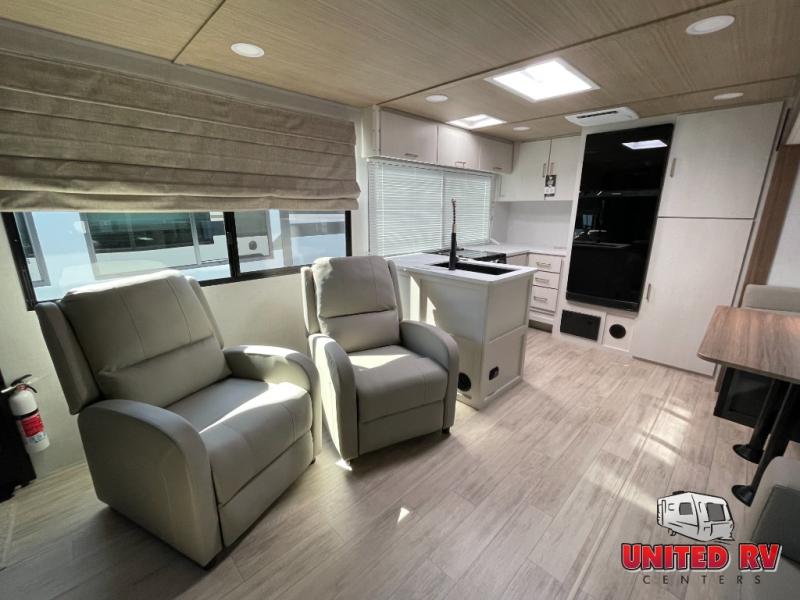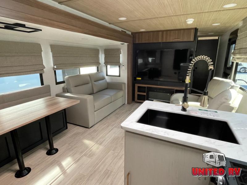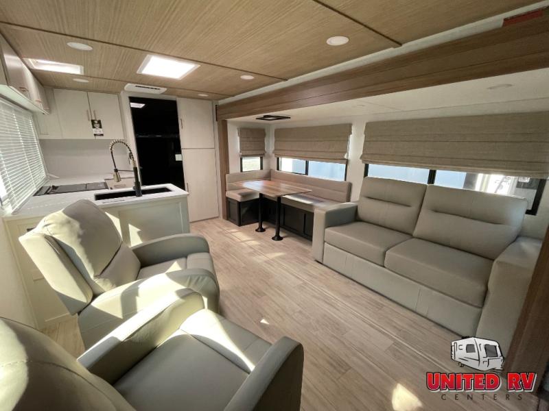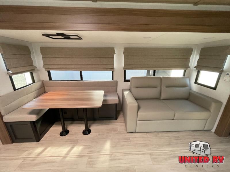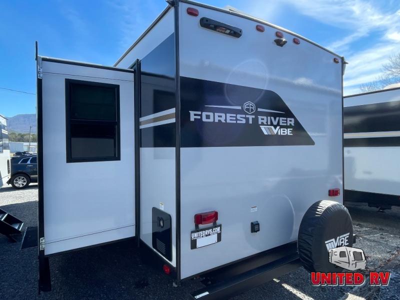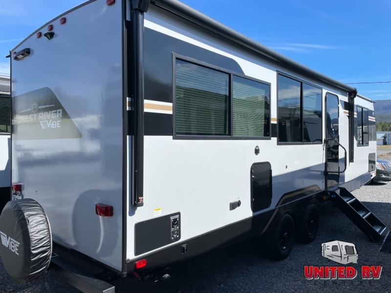 With any Vibe travel trailer by Forest River, you will enjoy comfort at every turn! There is a Norco huck-bolted steel frame, an enclosed underbelly with 12V heating pads, and a PVC roof membrane for added durability. You will also find a universal docking station outside, along with slam latch doors, and the largest square windows in its class. Inside, you'll find a 6' 8" ceiling height, an oversized residential-style sink, no carpet for easier cleaning, plus premium residential-style furniture for all around comfort. Each model is also prepped for a back-up camera, an On-The-Go ladder attachment, and solar power, allowing you to upgrade your travel trailer if you choose!