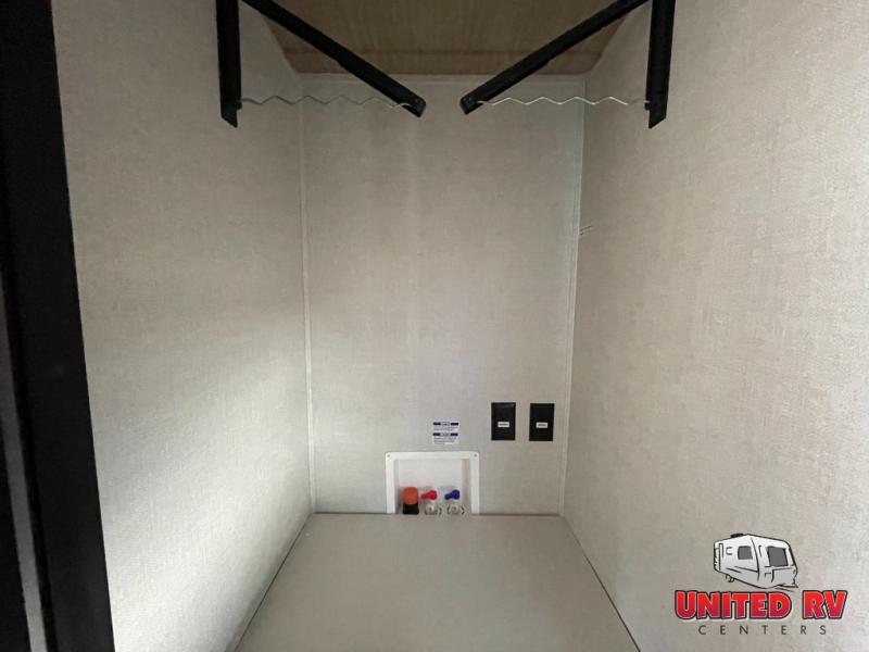 Escape to the great outdoors in this Vibe travel trailer. Once you arrive at your campsite, set up the 20' patio awning, then grab the fishing poles from the large pass-through storage. You can make lunch on the 3-in-1 convection oven, and your food can be stored in the 10.7 cu. ft. 12V refrigerator. The spacious full bath includes walk-in shower with a seat to clean up every day, and there is a linen closet to store clean towels and necessities. The front private bedroom includes a custom king bed with generous storage space, plus washer and dryer prep if you choose to add those appliances!