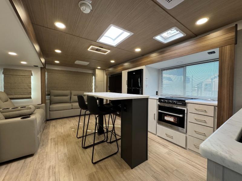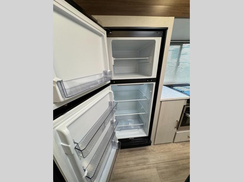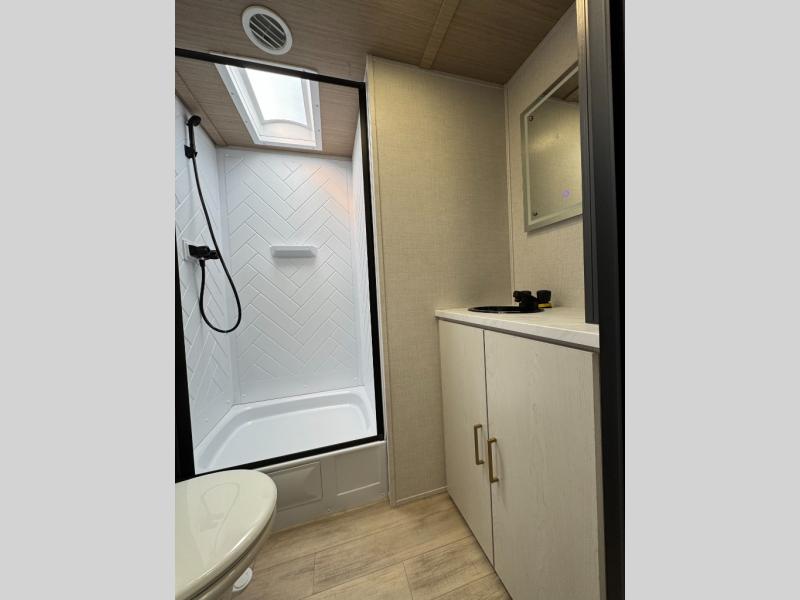 The Vibe 2800RL features dual opposing slides that create an open, residential-style living area. Oversized panoramic windows and a living area skylight bring in natural light, while the rear living layout offers comfortable seating and excellent entertainment space. A front private bedroom and a spacious full bathroom complete this well-balanced floorplan.