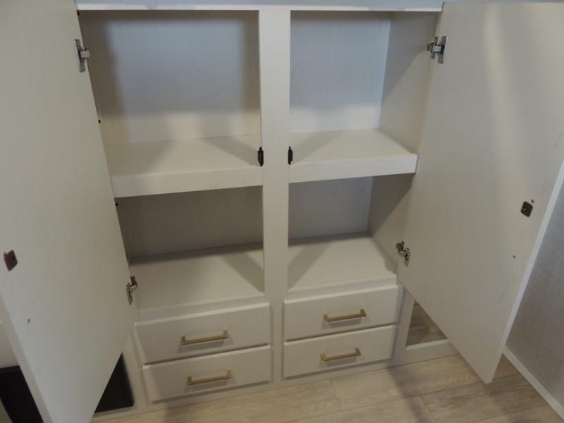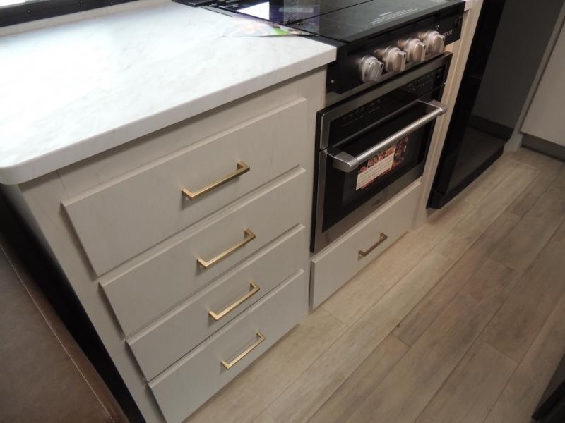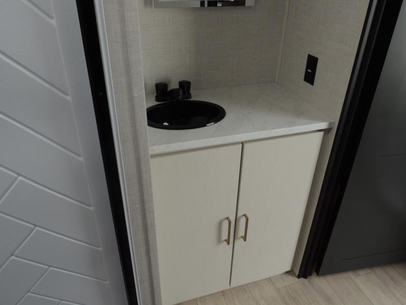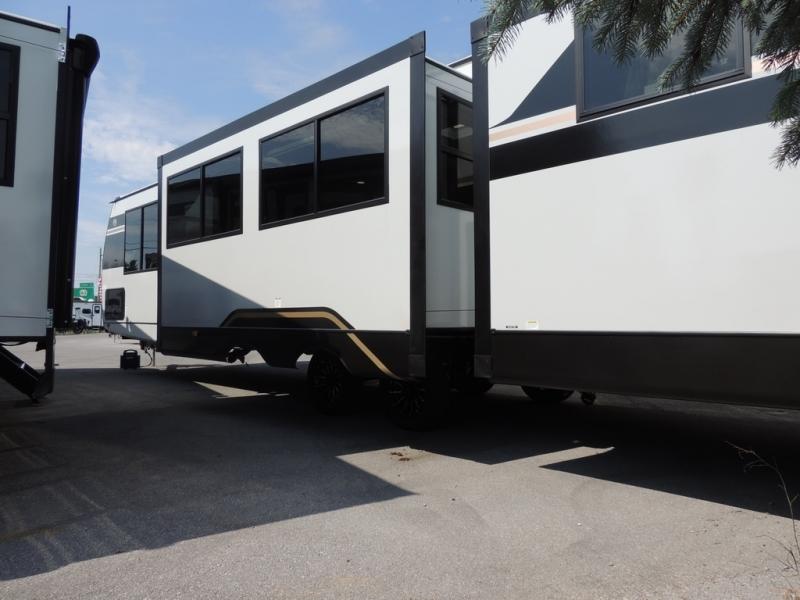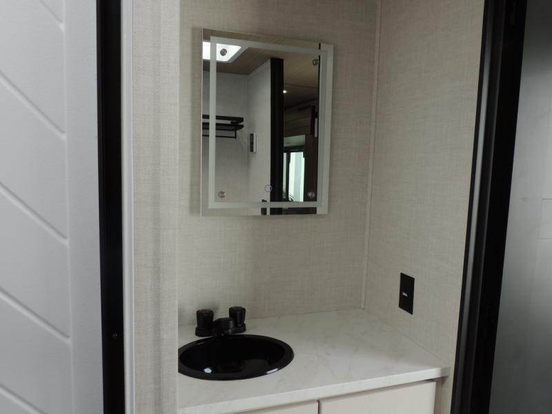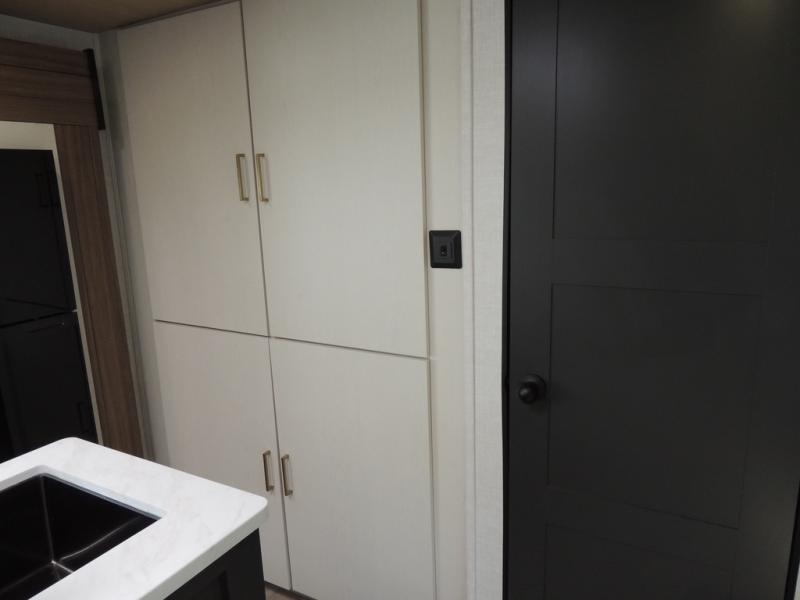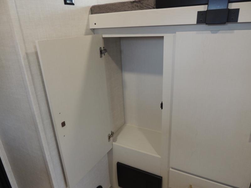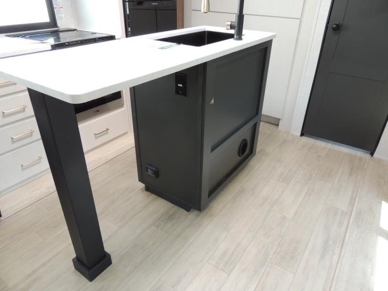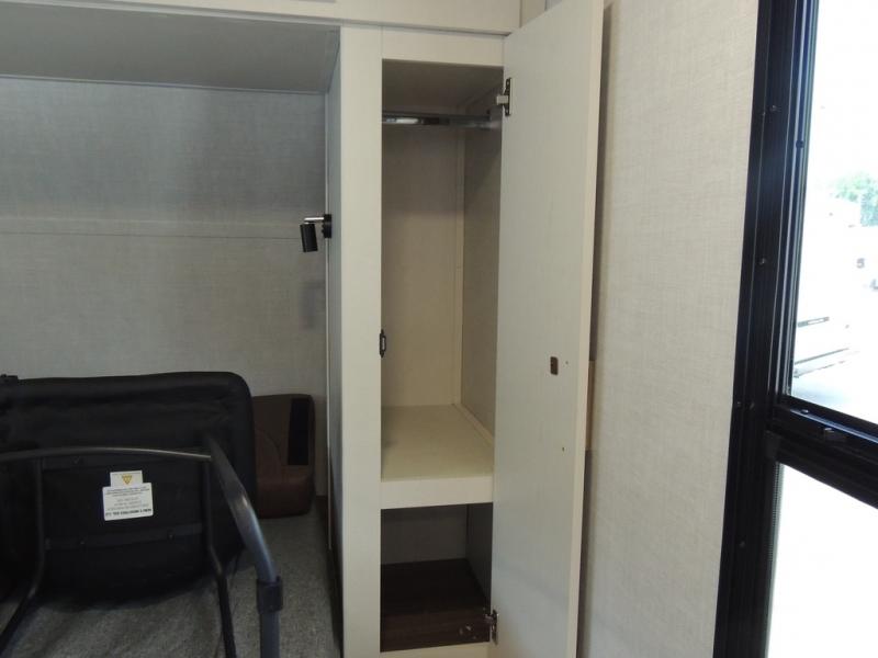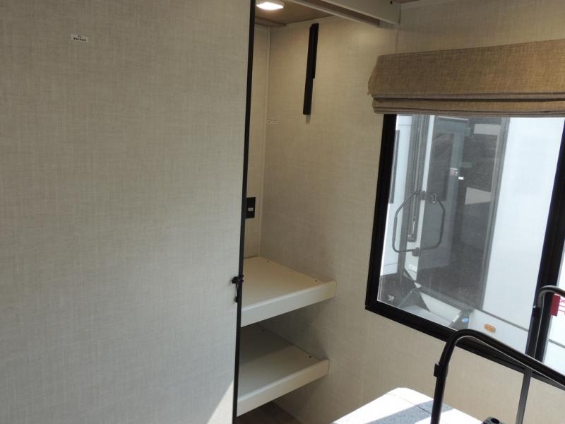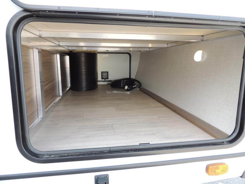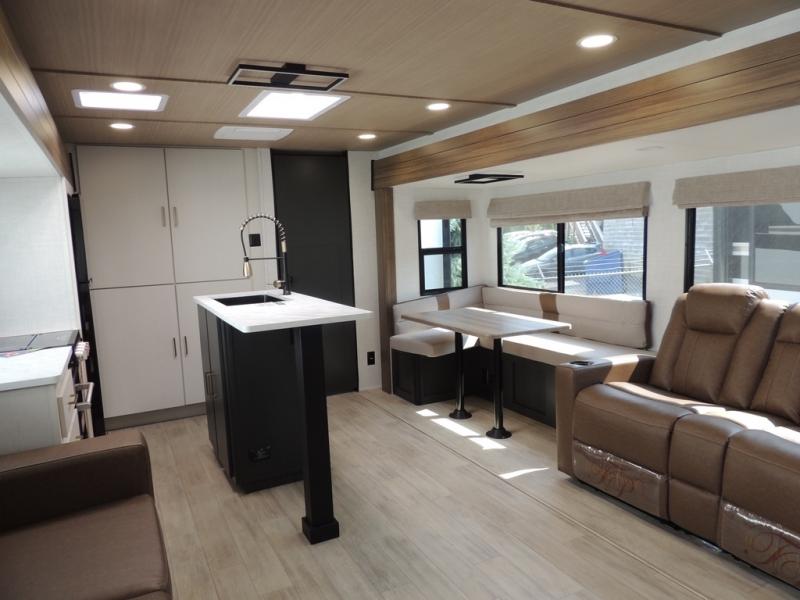 Whether you enjoy spending time outdoors or indoors, there is something for everyone in this travel trailer. The large pass-through storage can store your fishing poles, and the 20' electric awning with LED lights will create an outdoor living space. There is even an outdoor refrigerator with an outside storage cabinet and 32" TV! You will love all the interior space thanks to the dual opposing slides in the main living area, which will give the chef space to work around the kitchen island. Your crew can visit on the tri-fold sofa, theater seating and 5-person dinette while the fireplace is going, but you'll probably find the kids spending most of their time in the private bunkhouse! What more could you want in a travel trailer?!