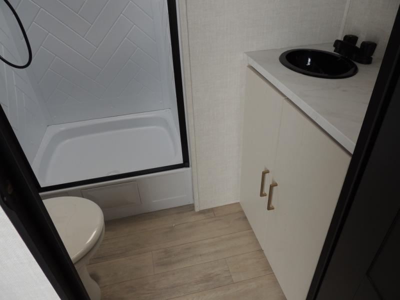 With any Vibe travel trailer by Forest River, you will enjoy comfort at every turn! There is a Norco huck-bolted steel frame, an enclosed underbelly with 12V heating pads, and a PVC roof membrane for added durability. You will also find a universal docking station outside, along with slam latch doors, European style square windows, and an automotive painted front cap. Head inside to enjoy the premium residential-style furniture, decorative window treatments, privacy shades in the living room and bedroom, and many more comforts!