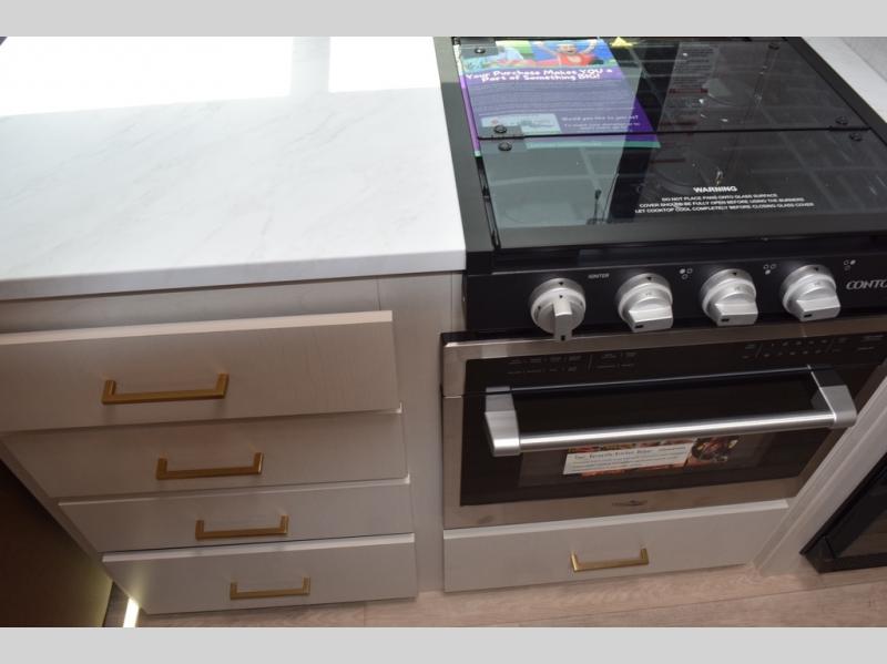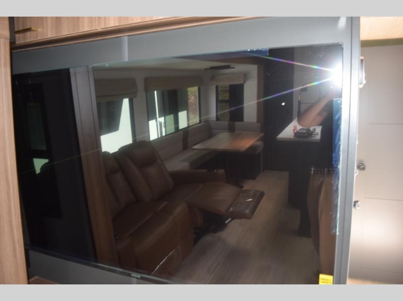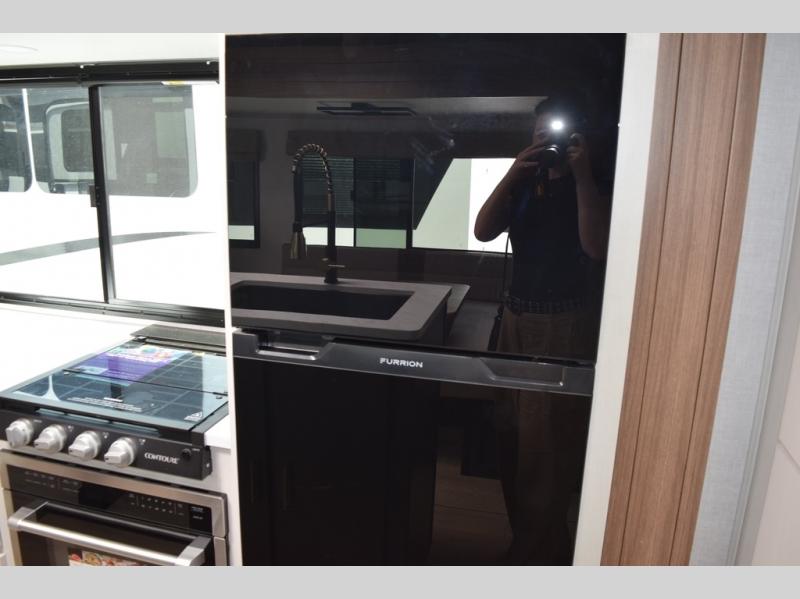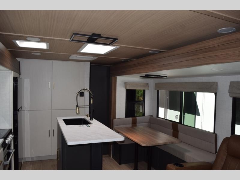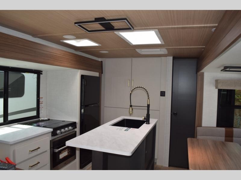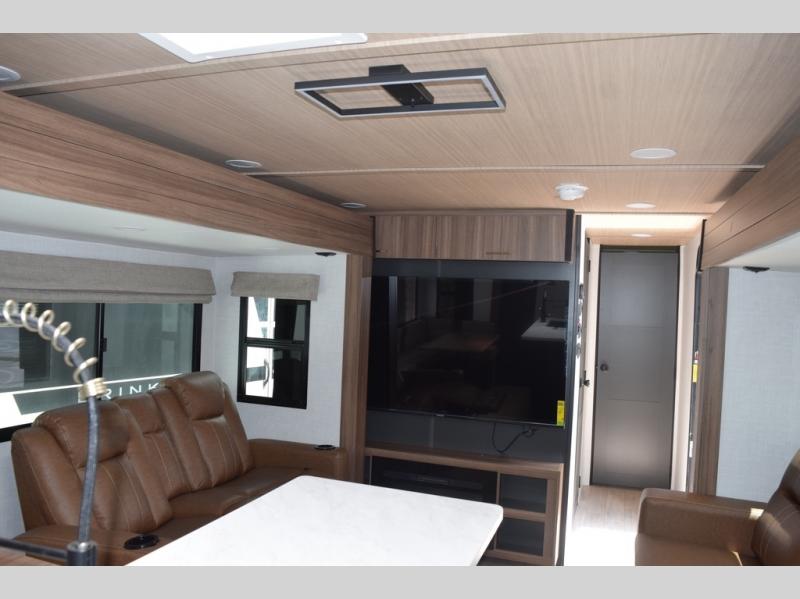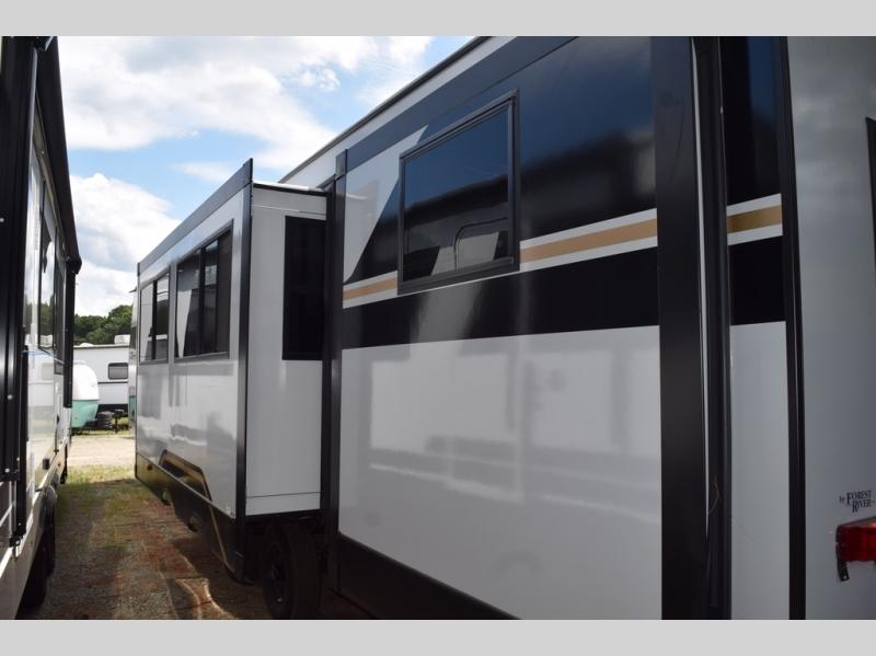 Whether you enjoy spending time outdoors or indoors, there is something for everyone in this travel trailer. The large pass-through storage can store your fishing poles, and the 20' electric awning with LED lights will create an outdoor living space. There is even an outdoor refrigerator with an outside storage cabinet and 32" TV! You will love all the interior space thanks to the dual opposing slides in the main living area, which will give the chef space to work around the kitchen island. Your crew can visit on the tri-fold sofa, theater seating and 5-person dinette while the fireplace is going, but you'll probably find the kids spending most of their time in the private bunkhouse! What more could you want in a travel trailer?!
