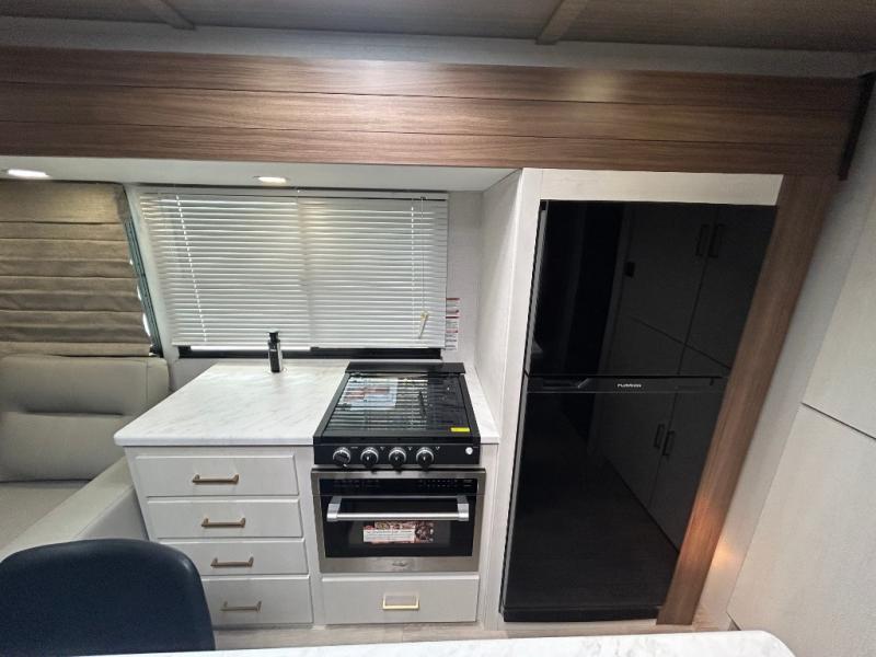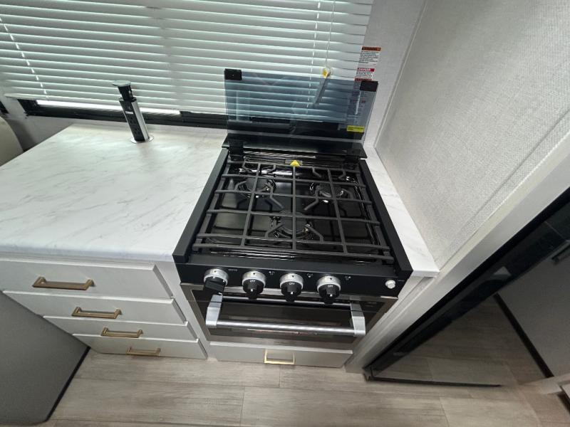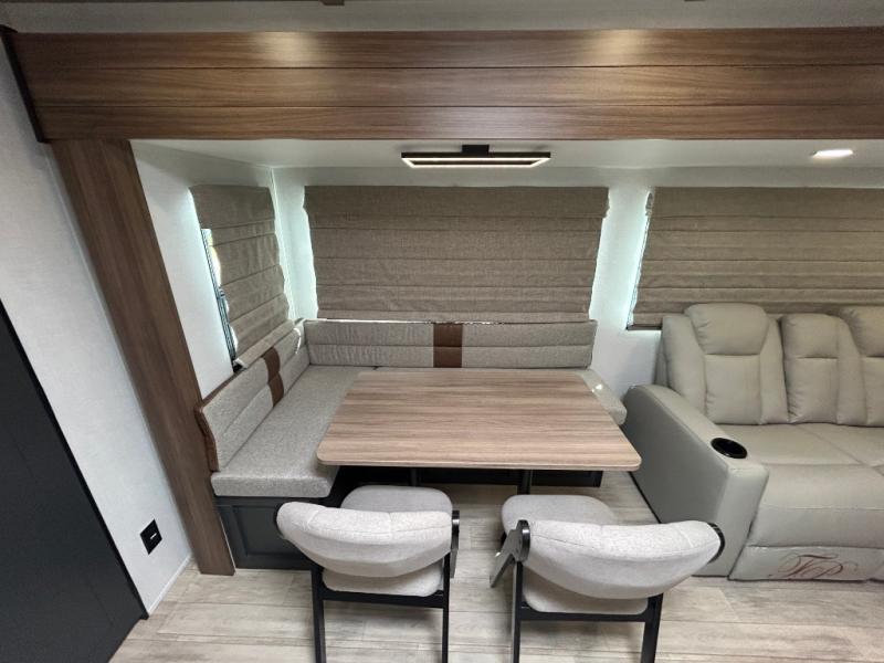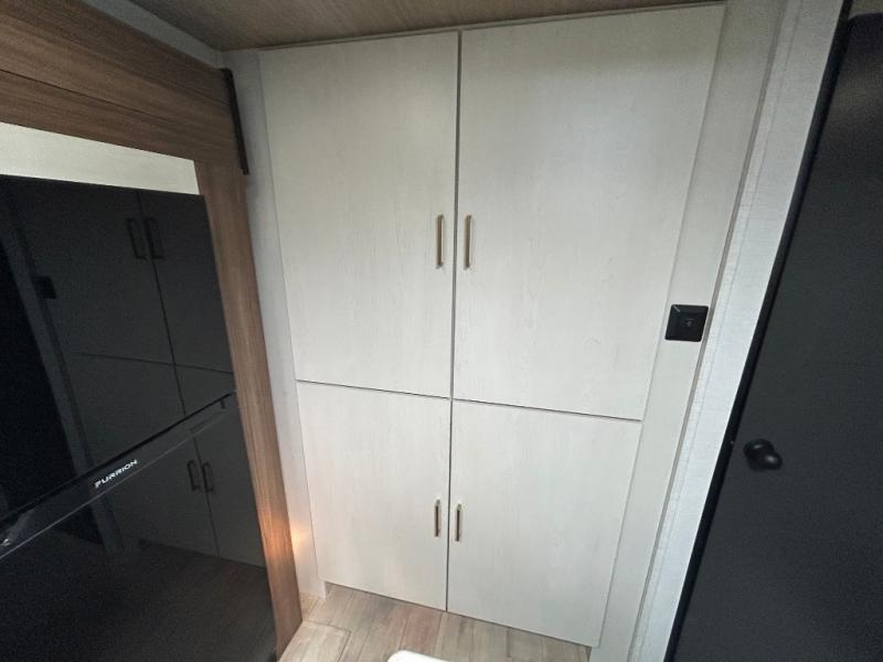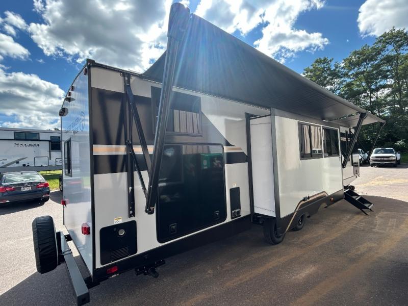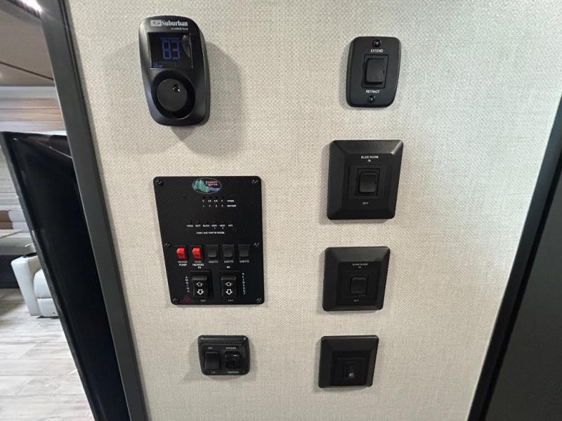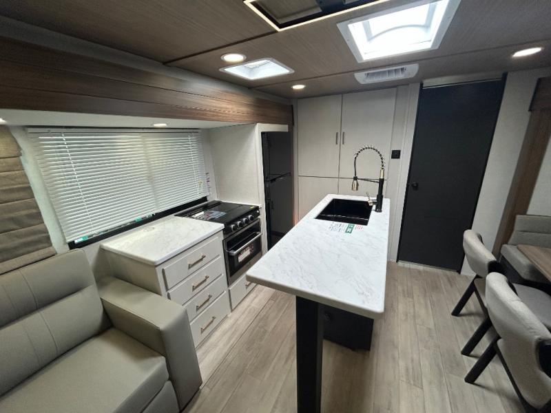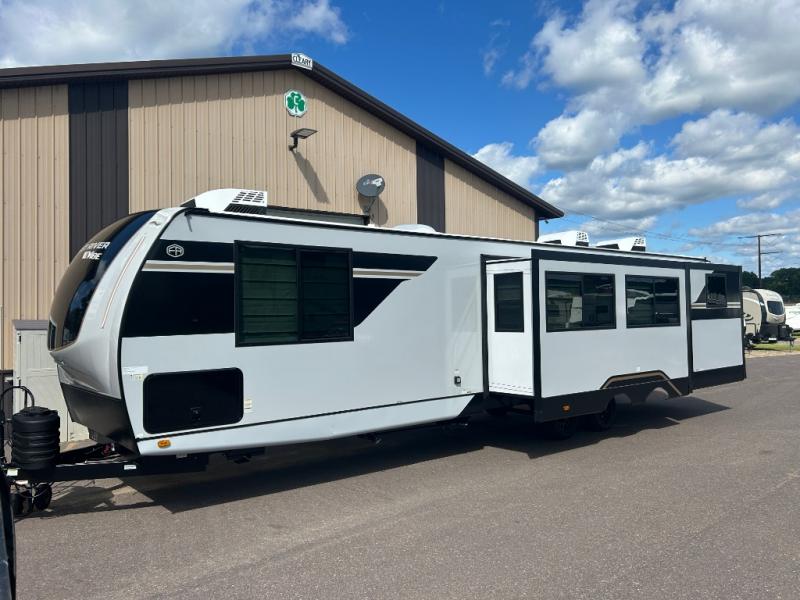 Whether you enjoy spending time outdoors or indoors, there is something for everyone in this travel trailer. The large pass-through storage can store your fishing poles, and the 20' electric awning with LED lights will create an outdoor living space. There is even an outdoor refrigerator with an outside storage cabinet and 32" TV! You will love all the interior space thanks to the dual opposing slides in the main living area, which will give the chef space to work around the kitchen island. Your crew can visit on the tri-fold sofa, theater seating and 5-person dinette while the fireplace is going, but you'll probably find the kids spending most of their time in the private bunkhouse! What more could you want in a travel trailer?!