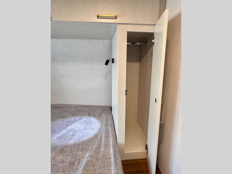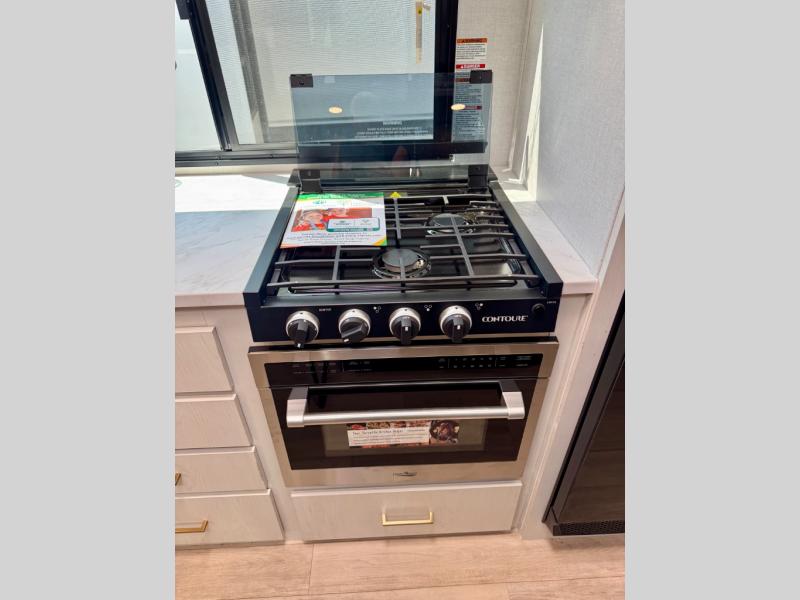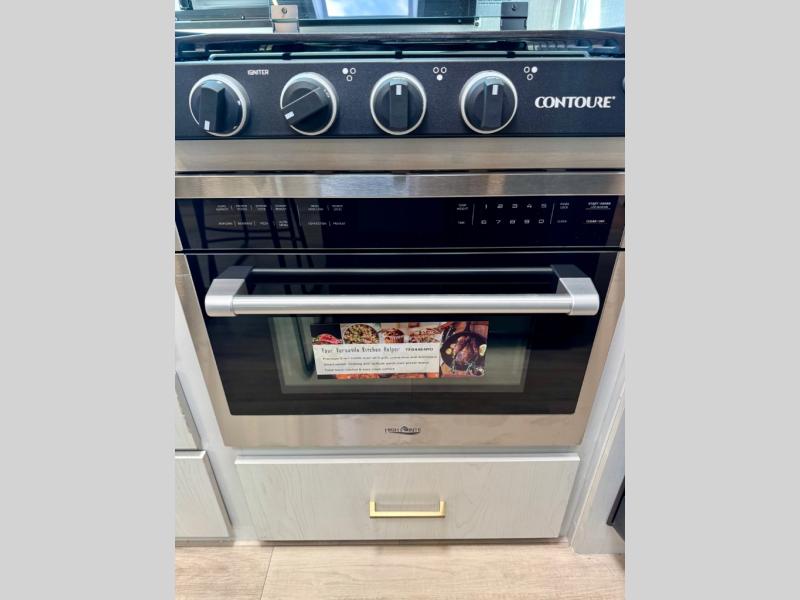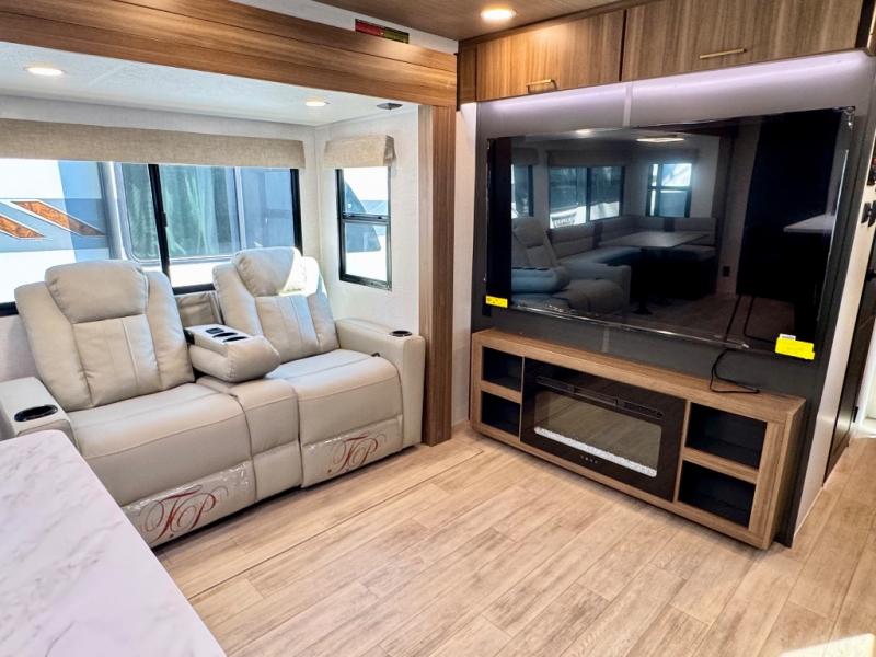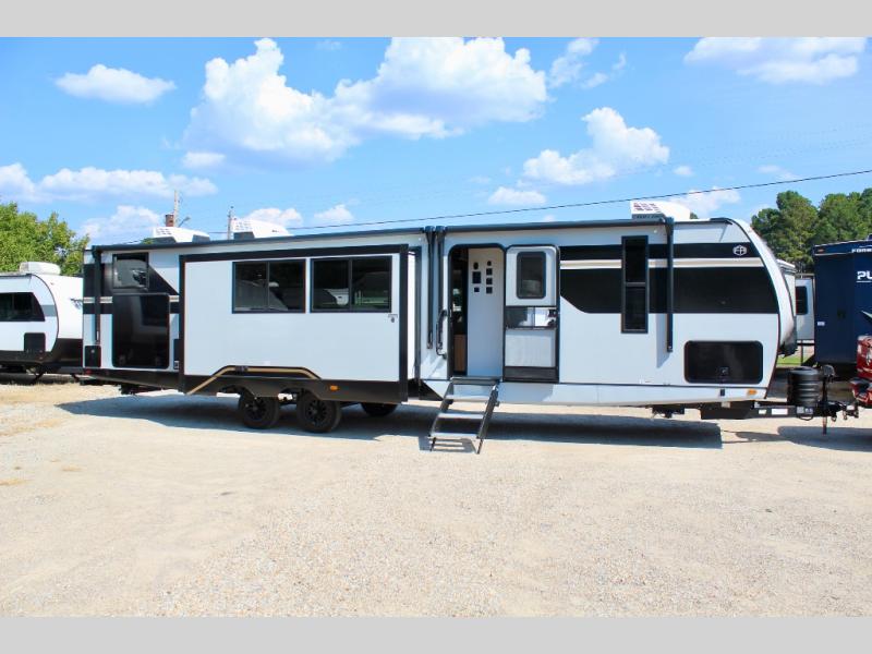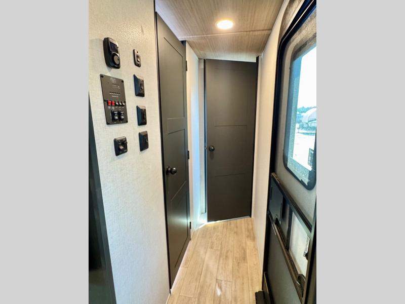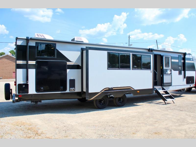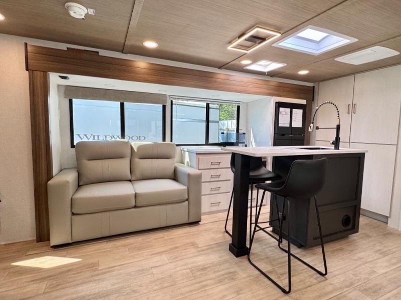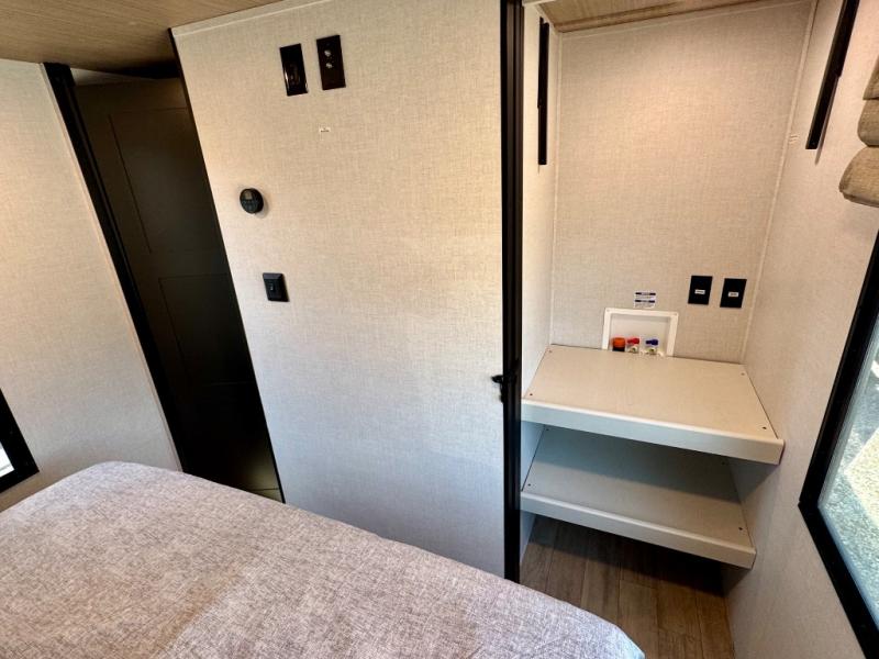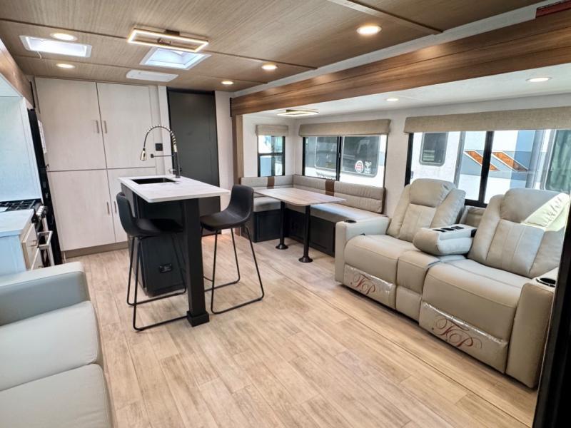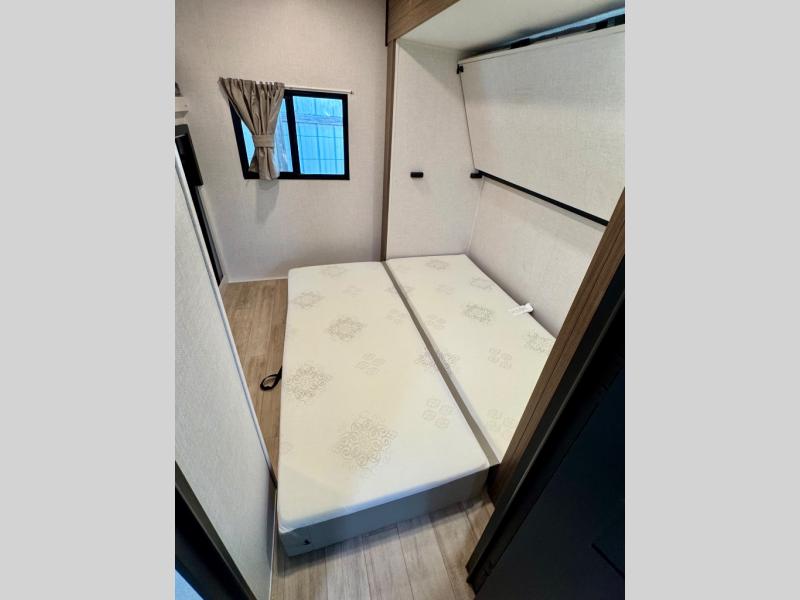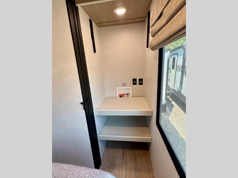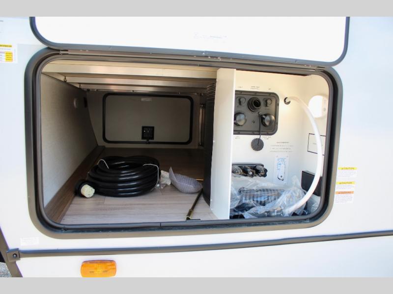 Whether you enjoy spending time outdoors or indoors, there is something for everyone in this travel trailer. The large pass-through storage can store your fishing poles, and the 20' electric awning with LED lights will create an outdoor living space. There is even an outdoor refrigerator with an outside storage cabinet and 32" TV! You will love all the interior space thanks to the dual opposing slides in the main living area, which will give the chef space to work around the kitchen island. Your crew can visit on the tri-fold sofa, theater seating and 5-person dinette while the fireplace is going, but you'll probably find the kids spending most of their time in the private bunkhouse! What more could you want in a travel trailer?!