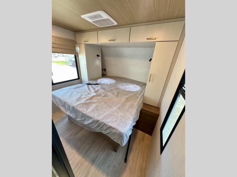 With any Vibe travel trailer by Forest River, you will enjoy comfort at every turn! There is a Norco huck-bolted steel frame, an enclosed underbelly with 12V heating pads, and a PVC roof membrane for added durability. You will also find a universal docking station outside, along with slam latch doors, European style square windows, and an automotive painted front cap. Head inside to enjoy the premium residential-style furniture, decorative window treatments, privacy shades in the living room and bedroom, and many more comforts!