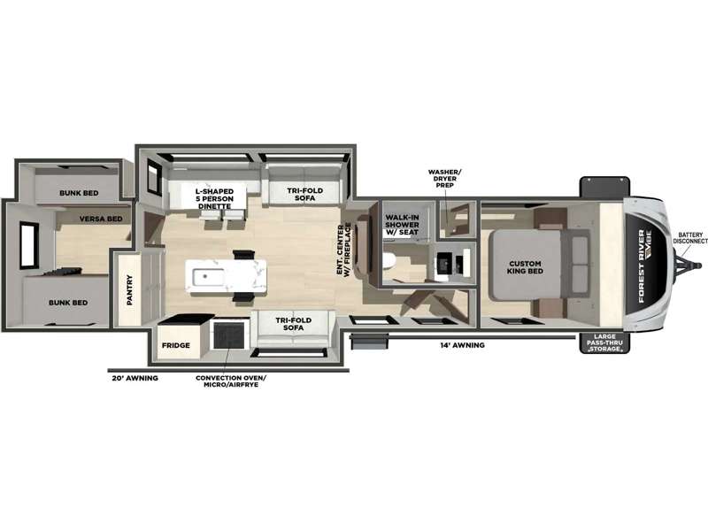 Rear Bunk Room/ Island Kitchen/ Theater seats/200 WATT ROOF MOUNTED SOLAR PACKAGE/ THREE AC!!