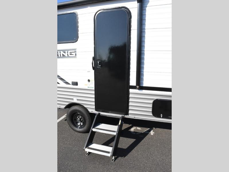 Durability and convenience are also key parts of the Viking experience. Built with a BAL NXG frame, powder-coated chassis, and seamless one-piece TPO roof, this trailer is designed for long-lasting performance on the road. Thoughtful camping features like a power awning with LED lighting, tankless on-demand water heater, USB charging ports, and solar prep make it easy to enjoy modern conveniences while embracing the outdoors.