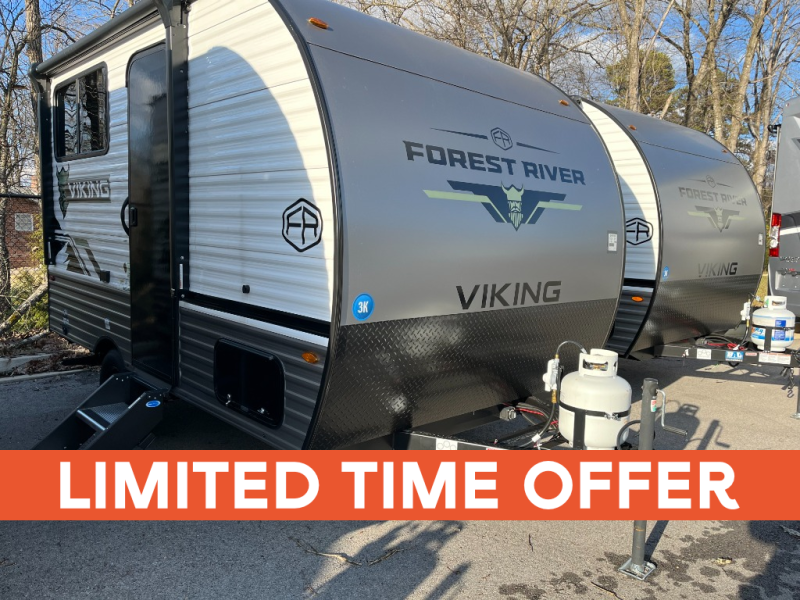 The budget-friendly Forest River Viking 3K Series travel trailers are for the newbie or seasoned RV user. Each model is constructed with a BAL NXG frame with Huck bolt assembly so that your trailer will last. Towing and setup is made hassle-free with self-adjusting electric brakes and Easy Lube axles. The Viking 3K Series travel trailers include a two burner cooktop, sink cover(s), and a foot flush toilet for added convenience. You will also find USB charging ports to keep your electronics charged, plus back up camera, LCI ladder and solar prep for the option to add these features