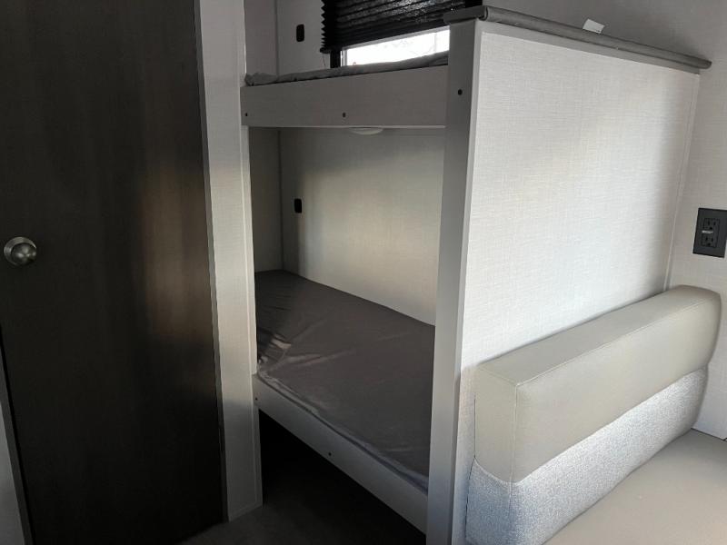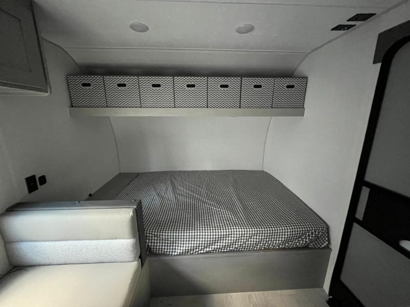 The double-size bunk beds make this travel trailer an excellent choice for families, friends, or guests who need extra sleeping space. The main sleeping area offers a cozy and practical retreat for nights on the road.