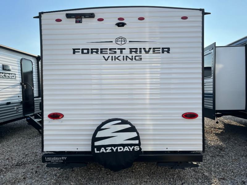 With any Forest River Viking 4K Series travel trailer, you can experience affordable camping with your family with the same comforts and quality found in bigger trailers. Each is built on an 8' wide frame with aerodynamic engineered front profile for easy towing. There are four stabilizing jacks to make camp setup easy while keeping your trailer secure while in camp, plus electric brakes for a safer tow. Inside there is kitchen backsplash, a 12V refrigerator, sink covers for added counter space, and a foot flush toilet, plus more. Choose an easy to tow Viking 4K Series and start enjoying the great outdoors without breaking your budget!