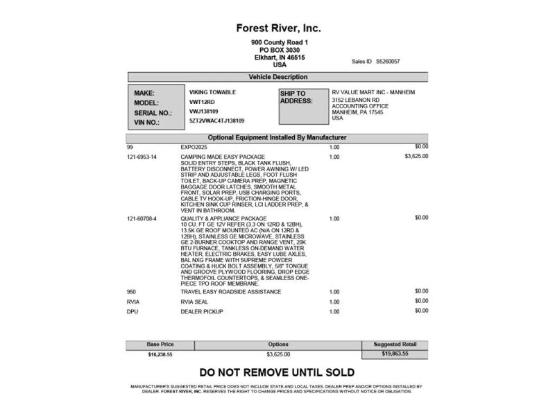The budget-friendly Forest River Viking 3K Series travel trailers are for the newbie or seasoned RV user. Each model is constructed with a BAL NXG frame with Huck bolt assembly so that your trailer will last. Towing and setup is made hassle-free with self-adjusting electric brakes and Easy Lube axles. The Viking 3K Series travel trailers include a two burner cooktop, sink cover(s), and a foot flush toilet for added convenience. You will also find USB charging ports to keep your electronics charged, plus back up camera, LCI ladder and solar prep for the option to add these features