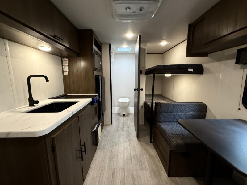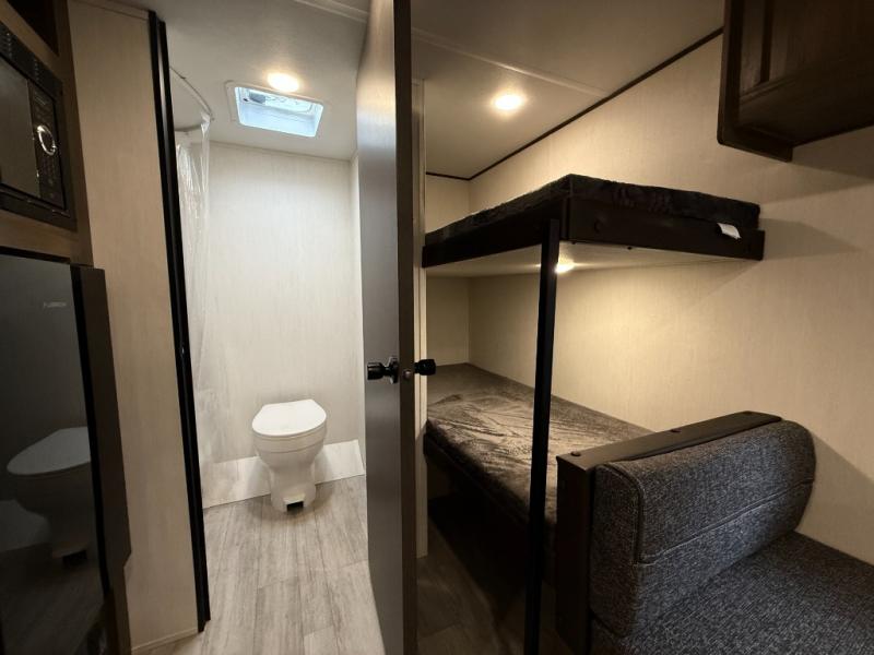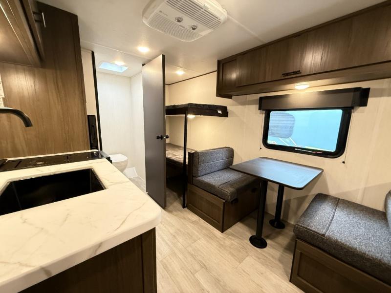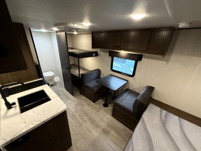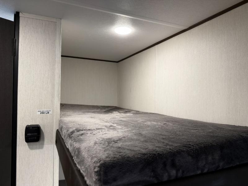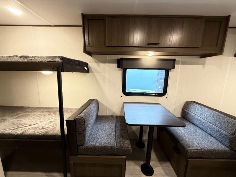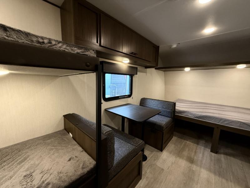 - Plush bunk beds, deluxe sleeper dinette, and massive underbed storage