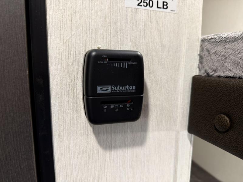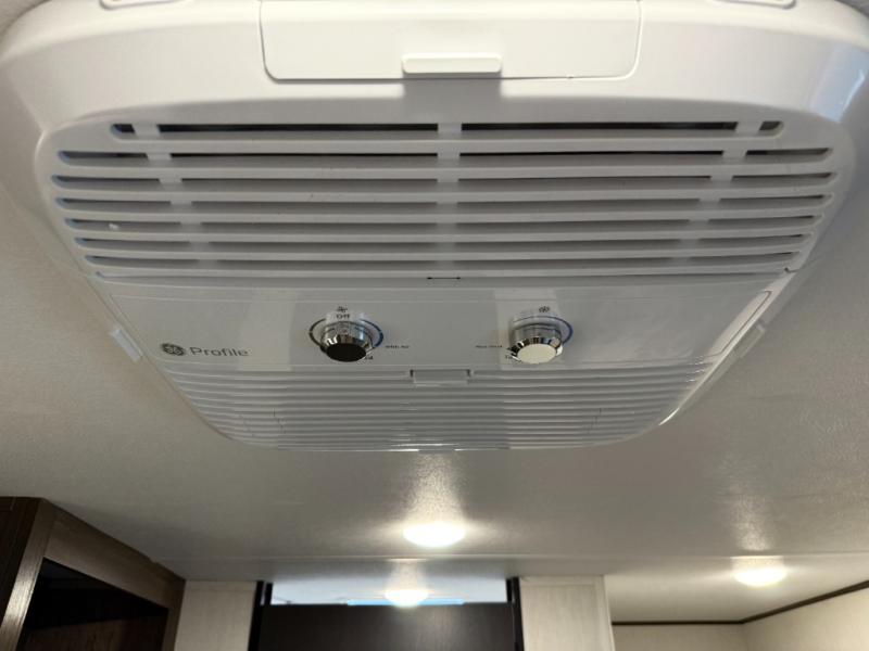 - Tankless water heater, high-efficiency A/C (vs side mounted A/C on like products), and 12V refrigerator