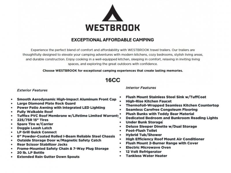 The Forest River Westbrook 16CC proves that compact doesn't mean compromise. With rugged construction, smart storage, and comfort-first features, it's your perfect companion for weekends away or family adventures.
