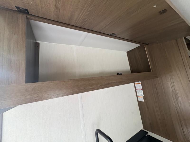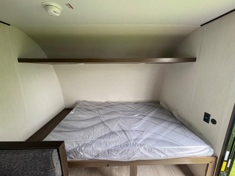 Pack your bags and head to your favorite camping spot with this cozy travel trailer. Once you've unloaded the outside storage and put out the 10' awning, you can head inside to make lunch on the two burner range or in the electric microwave oven. There is also a 12V refrigerator and overhead cabinets to store your food and essentials, and the booth dinette will provide a place to dine together. Whether you have littles ones or guests tagging along, the bunk beds in the rear corner will provide comfortable and compact sleeping spaces, while you take the front queen bed with a large overhead shelf. And the full bath onboard with a tub/shower and a toilet means you won't have to leave your camper in the middle of the night!