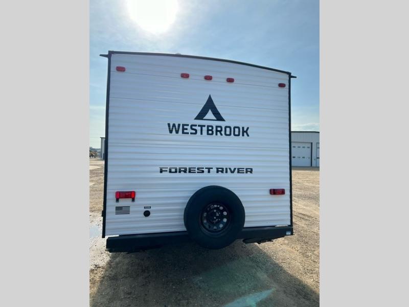The Westbrook by Forest River is an affordable travel trailer with many at-home comforts and camping conveniences! There is a powder-coated rolled I-beam steel chassis, a fully walkable roof, and a Tufflex PVC roof membrane for added durability. You will also find upgraded steel rims with EZ Lube axles, rear scissor stabilizer jacks, a Doggie Leash Latch, and a large rear steel bumper. The tankless water heater provides hot water when you need it, and the high-efficiency roof-mounted A/C is sure to keep you comfortable during those hot camping months. Head inside to enjoy seamless carefree Congoleum flooring, bright energy-efficient LED lights, pleated nightshades, and a faux marble seamless kitchen countertop to name a few comforts.