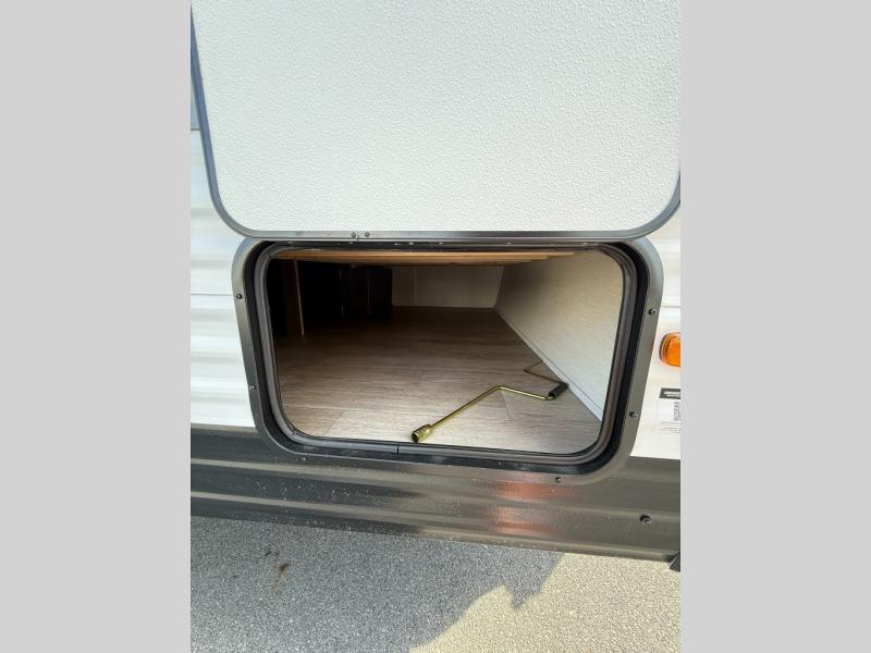 The Westbrook by Forest River is an affordable travel trailer with many at-home comforts and camping conveniences! There is a powder-coated rolled I-beam steel chassis, a fully walkable roof, and a Tufflex PVC roof membrane for added durability. You will also find upgraded steel rims with EZ Lube axles, rear scissor stabilizer jacks, a Doggie Leash Latch, and a large rear steel bumper. The tankless water heater provides hot water when you need it, and the high-efficiency roof-mounted A/C is sure to keep you comfortable during those hot camping months. Head inside to enjoy seamless carefree Congoleum flooring, bright energy-efficient LED lights, pleated nightshades, and a faux marble seamless kitchen countertop to name a few comforts.