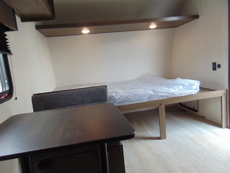 - Front queen bed with large overhead shelf