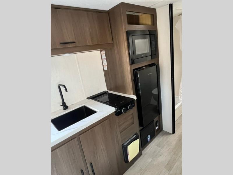 The Westbrook by Forest River is an affordable travel trailer with many at-home comforts and camping conveniences! There is a powder-coated rolled I-beam steel chassis, a fully walkable roof, and a Tufflex PVC roof membrane for added durability. You will also find upgraded steel rims with EZ Lube axles, rear scissor stabilizer jacks, a Doggie Leash Latch, and a large rear steel bumper. The tankless water heater provides hot water when you need it, and the high-efficiency roof-mounted A/C is sure to keep you comfortable during those hot camping months. Head inside to enjoy seamless carefree Congoleum flooring, bright energy-efficient LED lights, pleated nightshades, and a faux marble seamless kitchen countertop to name a few comforts.