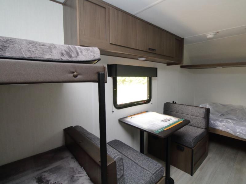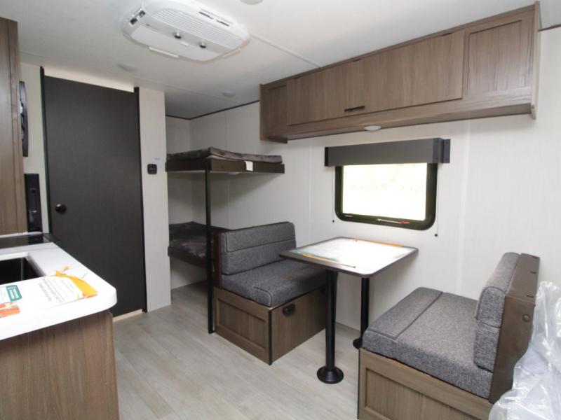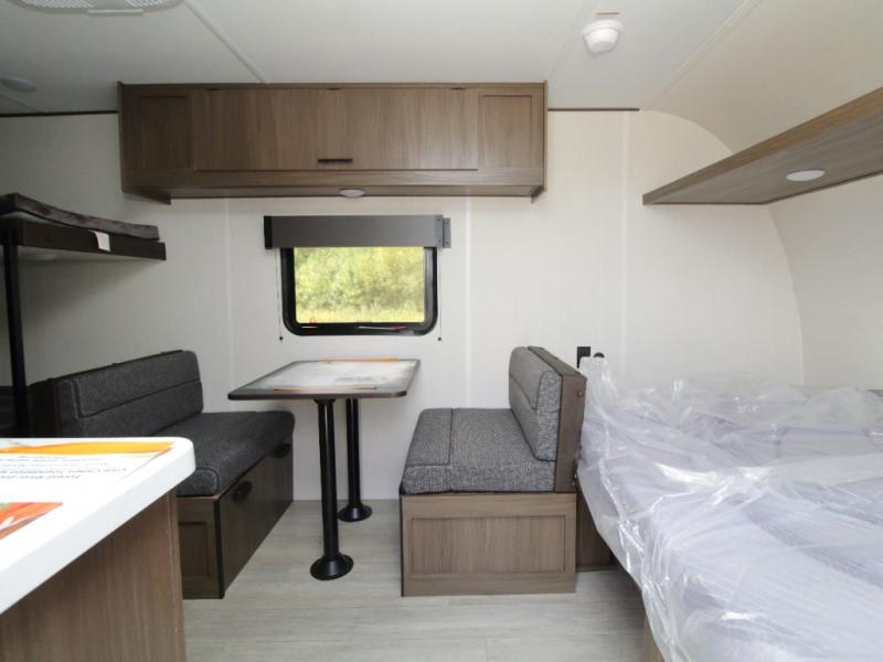 Hit the road in the 2026 Westbrook 16CC—featuring a front queen bed and rear bunk beds, plus a full bath and outdoor storage, it’s the perfect compact trailer for family-friendly adventures!
