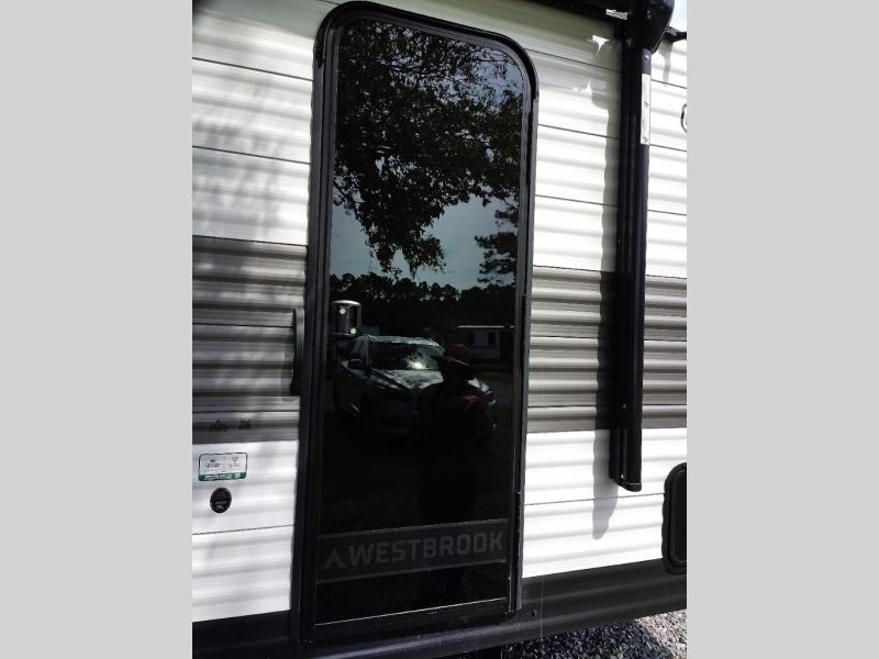 The Westbrook by Forest River is an affordable travel trailer with many at-home comforts and camping conveniences! There is a powder-coated rolled I-beam steel chassis, a fully walkable roof, and a Tufflex PVC roof membrane for added durability. You will also find upgraded steel rims with EZ Lube axles, rear scissor stabilizer jacks, a Doggie Leash Latch, and a large rear steel bumper. The tankless water heater provides hot water when you need it, and the high-efficiency roof-mounted A/C is sure to keep you comfortable during those hot camping months. Head inside to enjoy seamless carefree Congoleum flooring, bright energy-efficient LED lights, pleated nightshades, and a faux marble seamless kitchen countertop to name a few comforts.