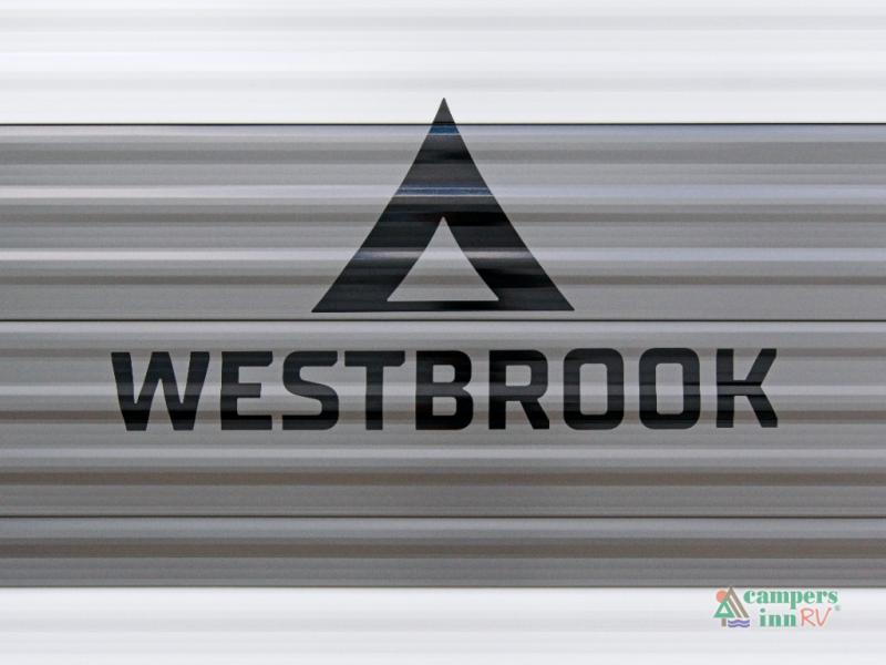 Outside, the Westbrook features durable fiberglass construction, an electric awning with LED lighting, pass-through storage, and pre-wiring for backup cameras and solar, making it both stylish and road-ready.