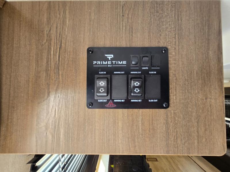 LED lighting, detachable 30-amp power cord, and roof-mounted A/C.