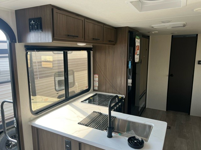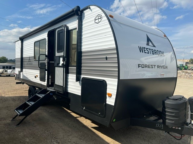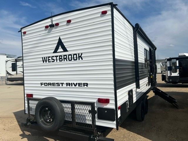 The Westbrook by Forest River is an affordable travel trailer with many at-home comforts and camping conveniences! There is high-impact aluminum rock guard, a one-piece PVC roof membrane, plus an enclosed and heated underbelly for added durability. You will also find styled steel wheels with EZ Lube axles, power stabilizer jacks, an exterior shower, and extended rain gutter downspouts. The tankless water heater provides hot water when you need it, and the 15,000 BTU ducted A/C is sure to keep you comfortable during those hot camping months. Head inside to enjoy seamless carefree Congoleum flooring, pleated nightshades throughout, and thermofoil pressed countertops to name a few comforts.