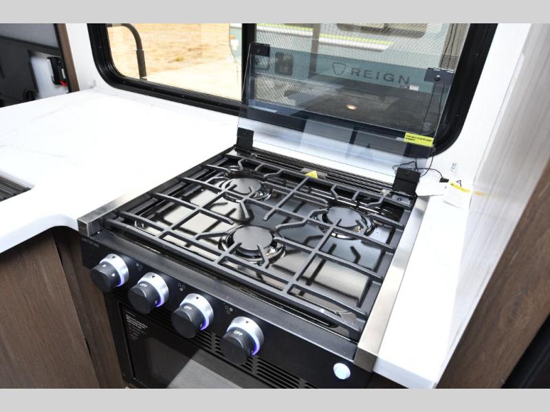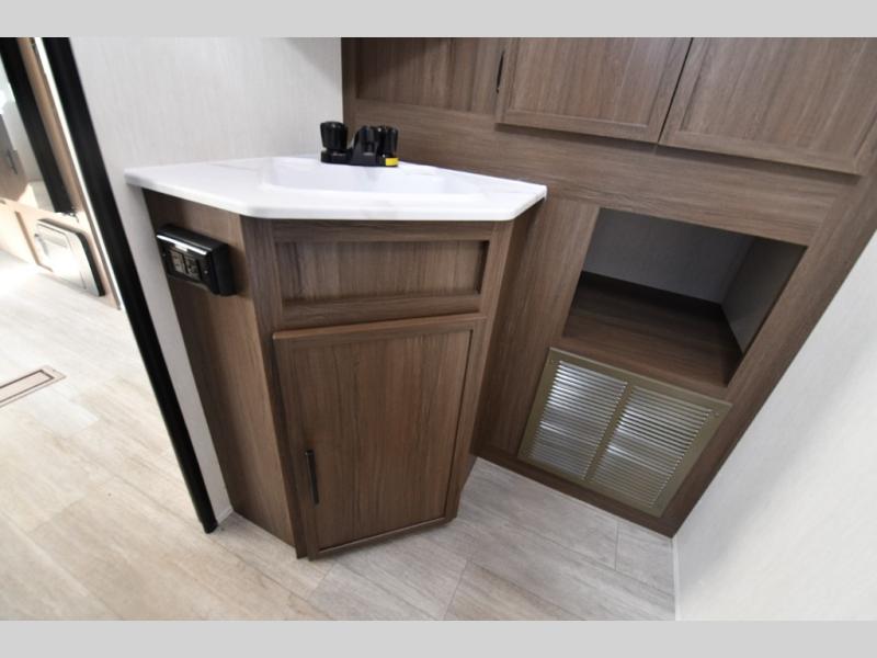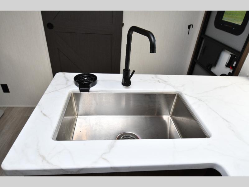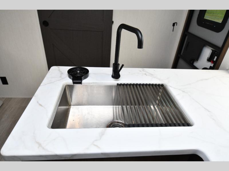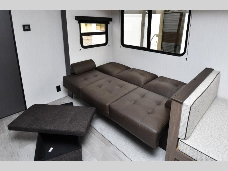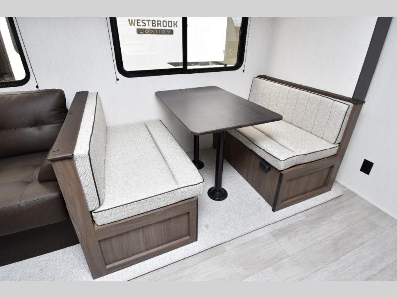Cooking and dining are a breeze with the three-burner stovetop, air fryer microwave, and 10.6 cu. ft. 12V refrigerator. When it’s time to enjoy the outdoors, take advantage of the outside griddle or relax under the shade of the awning. With a flip-down travel rack, 50 Amp service with 2nd A/C prep, and included spare tire, this Westbrook has everything you need for a seamless camping experience.
