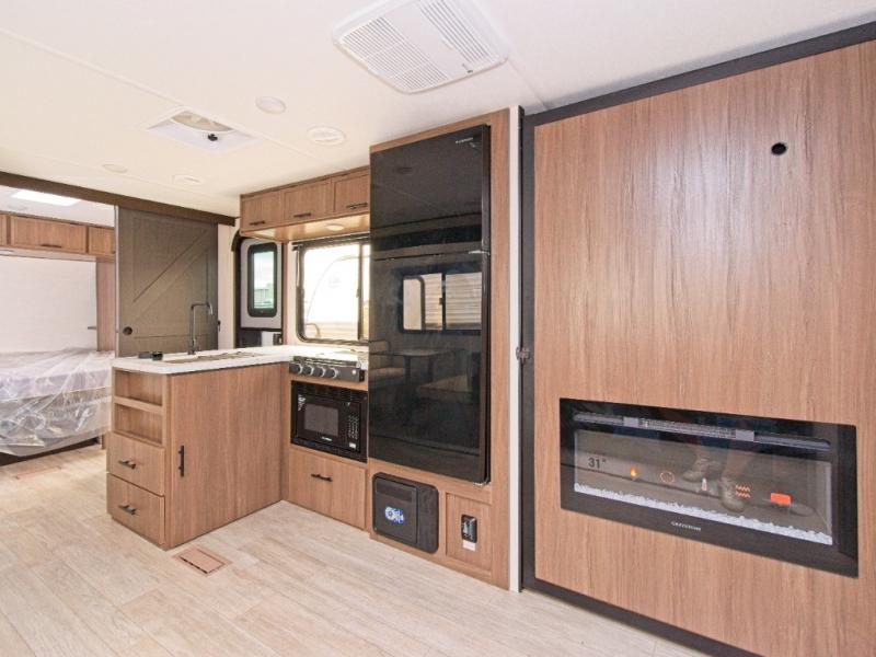 Experience elevated camping with the 2026 Forest River Westbrook 27CC, featuring a cozy electric fireplace and a hidden pantry for stylish comfort and smart storage.