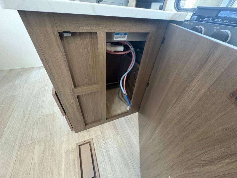 Pass-through compartment, generous overhead cabinets, and under-bed storage keep gear organized and accessible.
