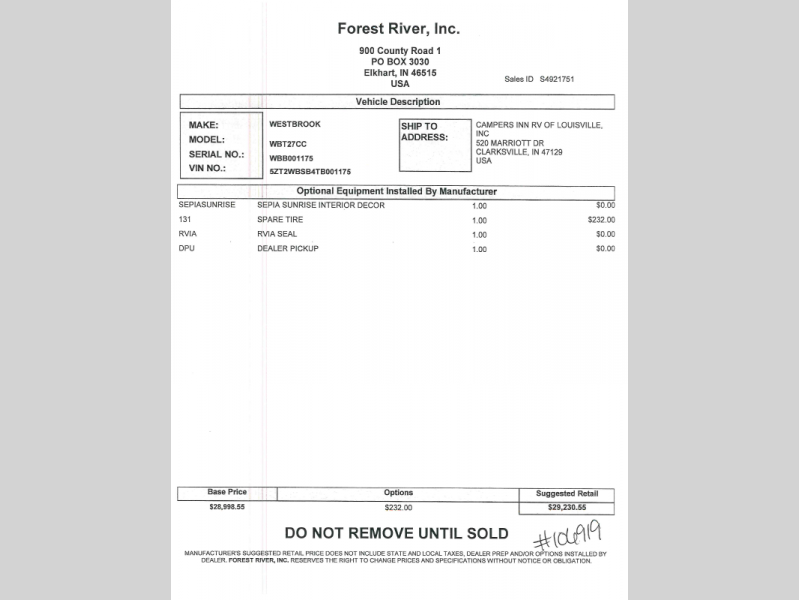 PLEASE CONFIRM OPTIONS WITH CAMPERS INN RV LOUISVILLE 812-282-7718