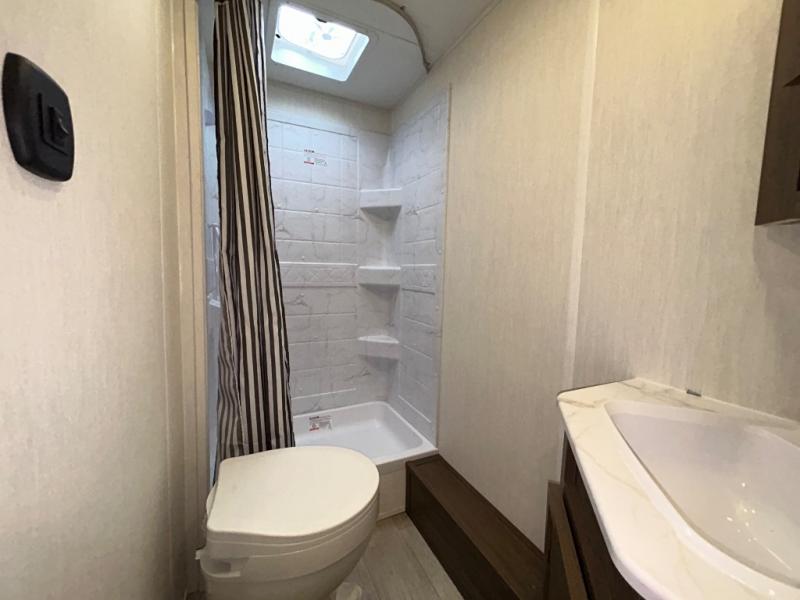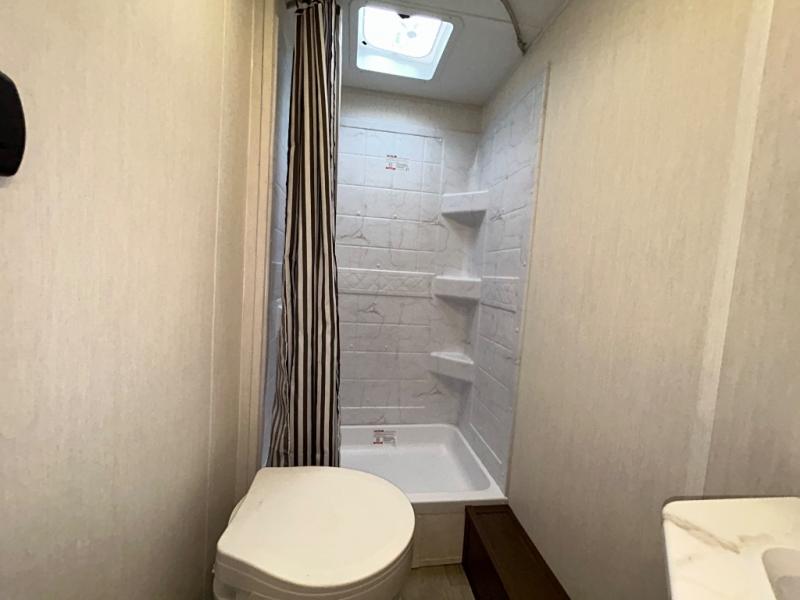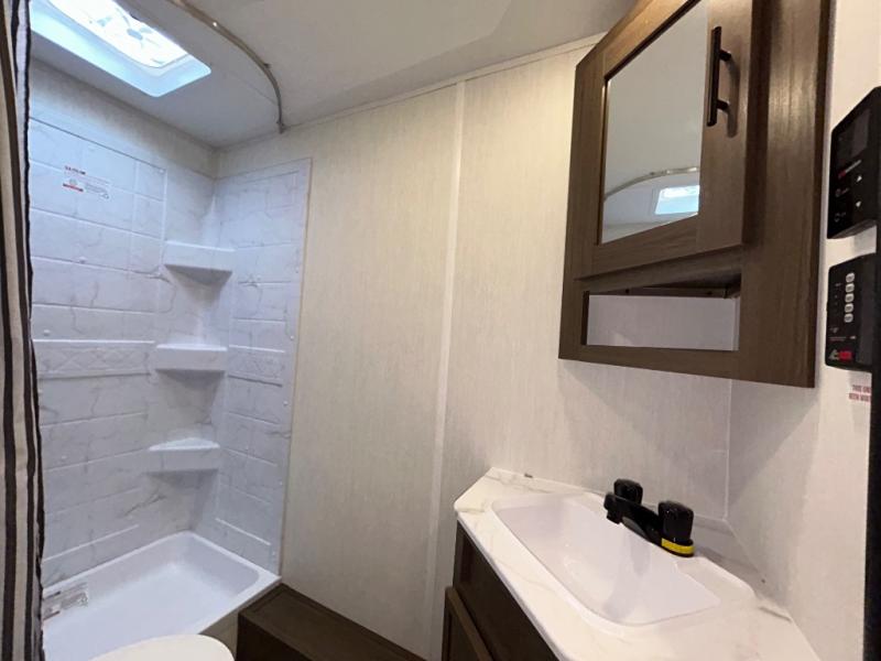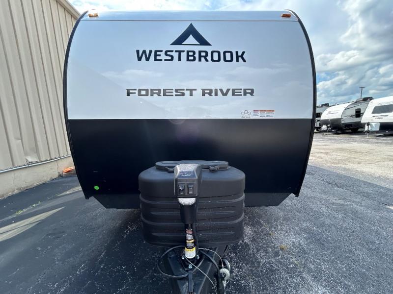 The Westbrook by Forest River is an affordable travel trailer with many at-home comforts and camping conveniences! There is high-impact aluminum rock guard, a one-piece PVC roof membrane, plus an enclosed and heated underbelly for added durability. You will also find styled steel wheels with EZ Lube axles, power stabilizer jacks, an exterior shower, and extended rain gutter downspouts. The tankless water heater provides hot water when you need it, and the 15,000 BTU ducted A/C is sure to keep you comfortable during those hot camping months. Head inside to enjoy seamless carefree Congoleum flooring, pleated nightshades throughout, and thermofoil pressed countertops to name a few comforts.