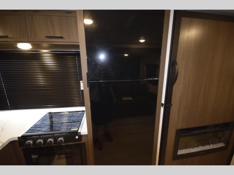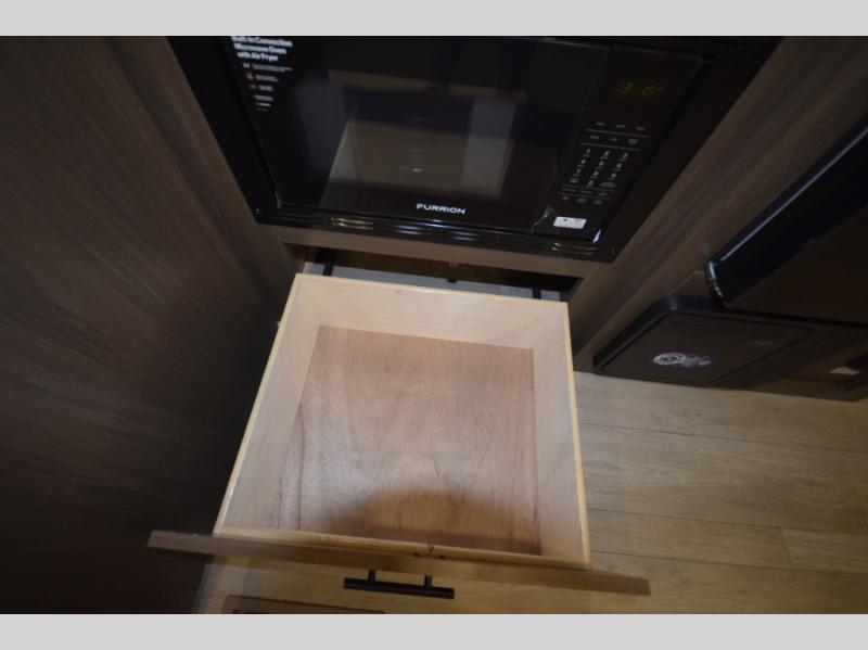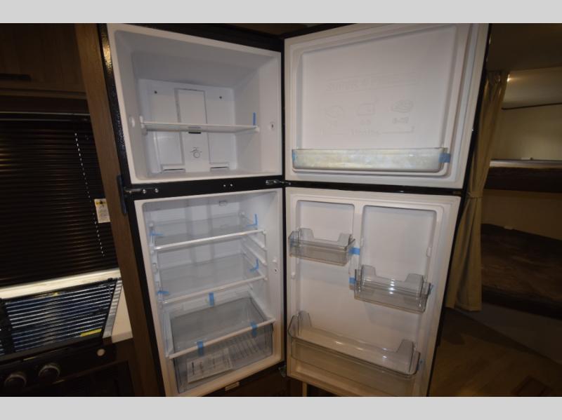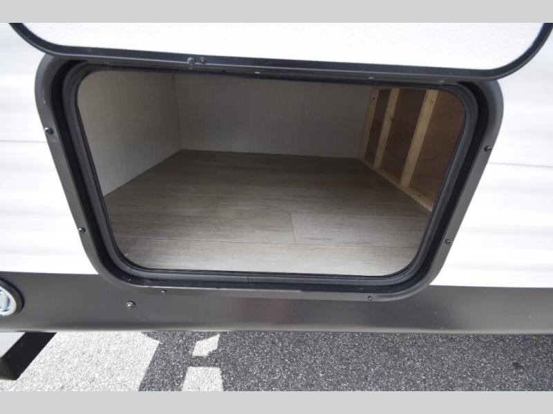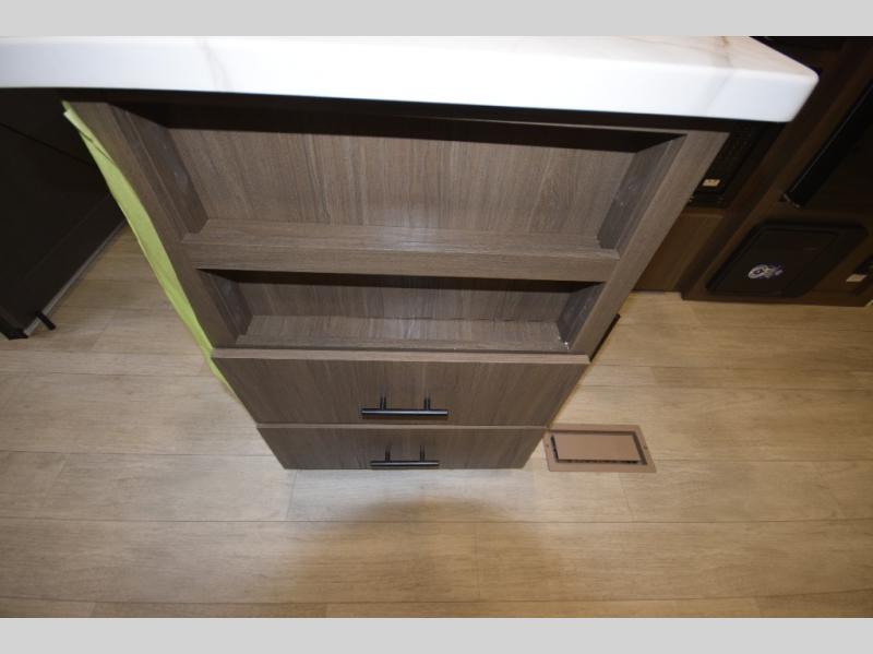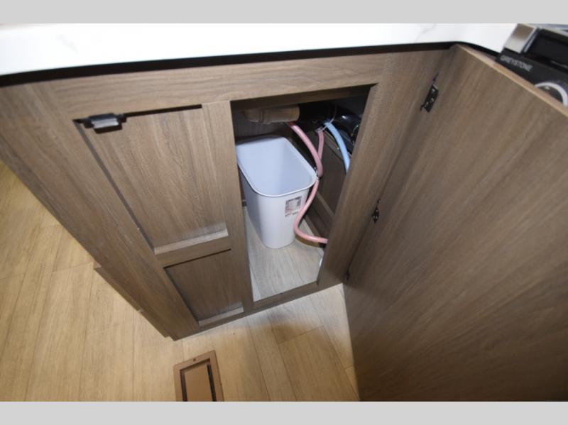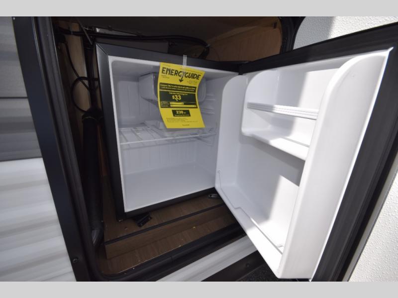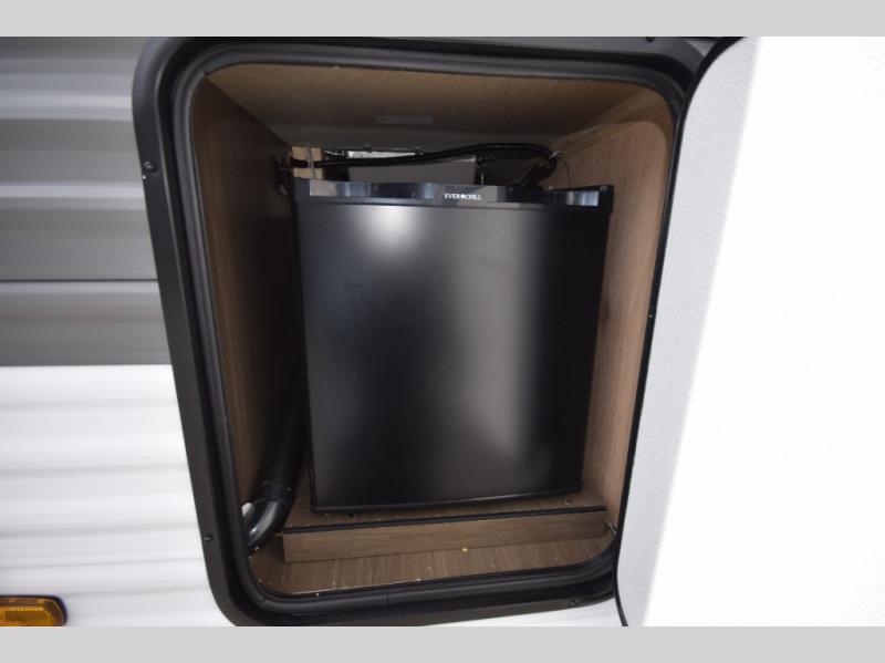 Outdoor living is just as exciting—enjoy cold drinks from the mini refrigerator, stash your gear in the drop-frame mega pass-through storage, and park with confidence thanks to the rear backup camera.