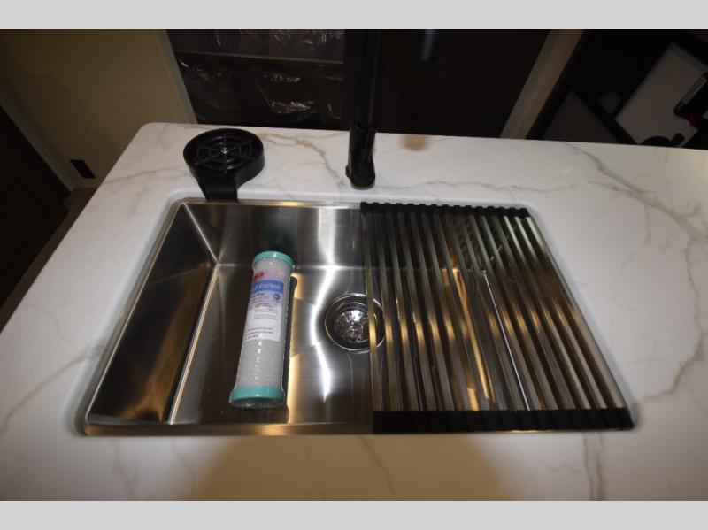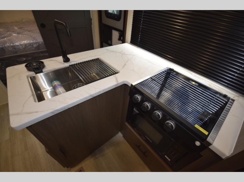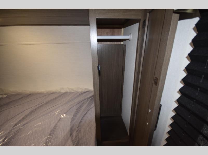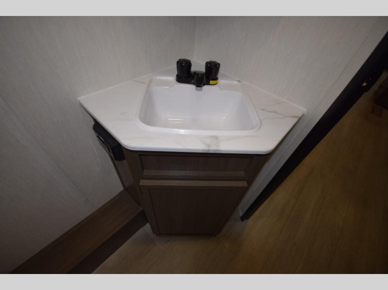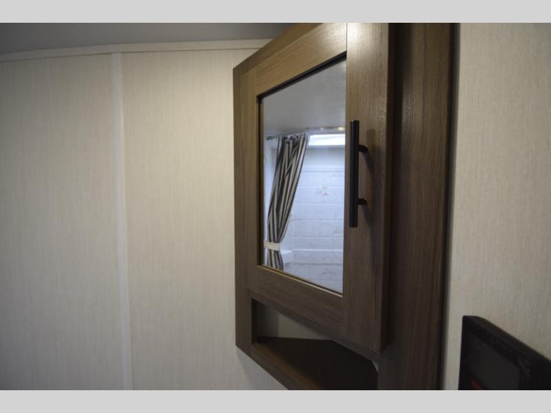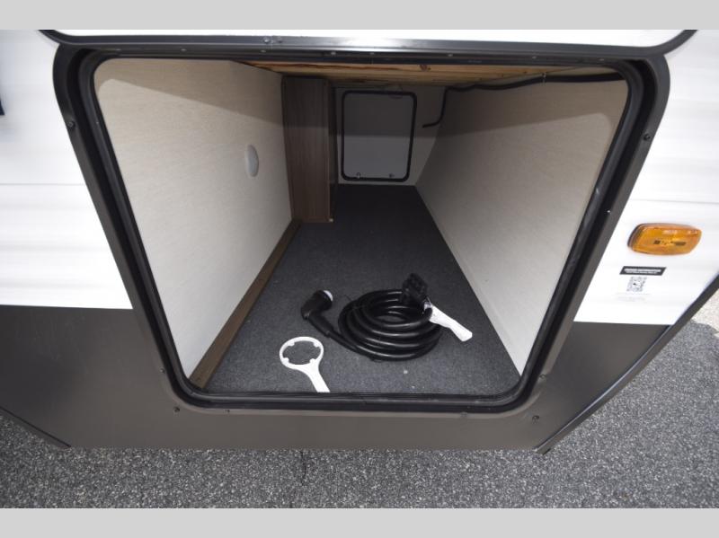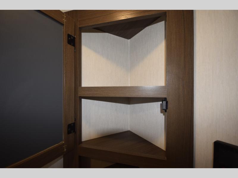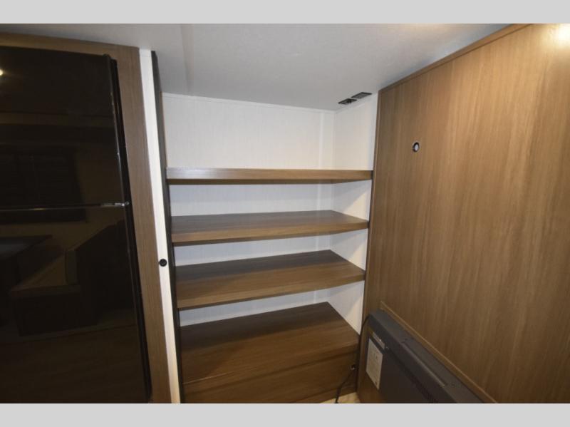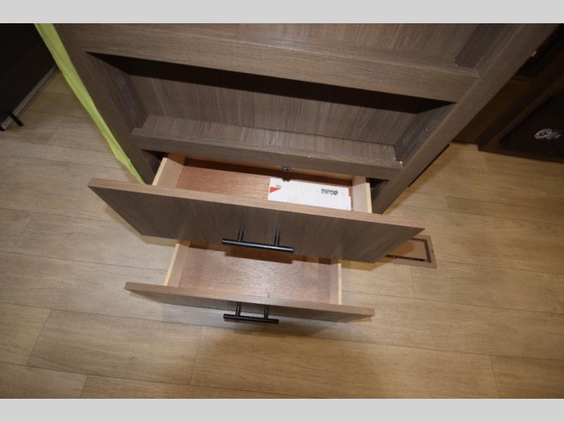 Outdoor living is just as exciting—enjoy cold drinks from the mini refrigerator, stash your gear in the drop-frame mega pass-through storage, and park with confidence thanks to the rear backup camera.
