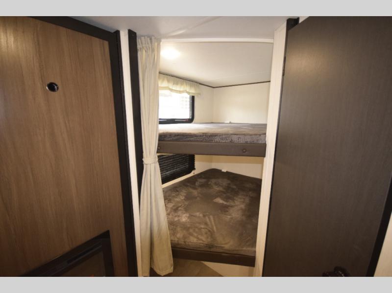 For families or group travelers, the double-size bunks are a game changer — perfect for kids, guests, or extra storage. Plus, the full bathroom is conveniently located near the bunks, making nighttime routines quick and easy.