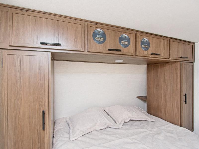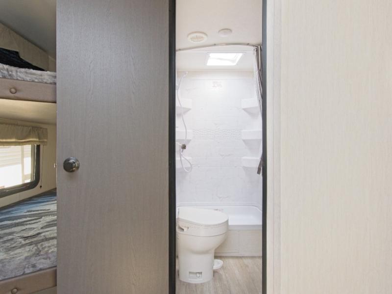 When it’s time to rest, the Camp King Bed ensures a great night’s sleep, complemented by dual bedside wardrobes for storage. The full bath next to the bunks makes nighttime routines easy for the whole family.